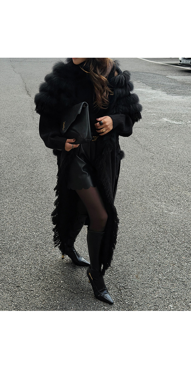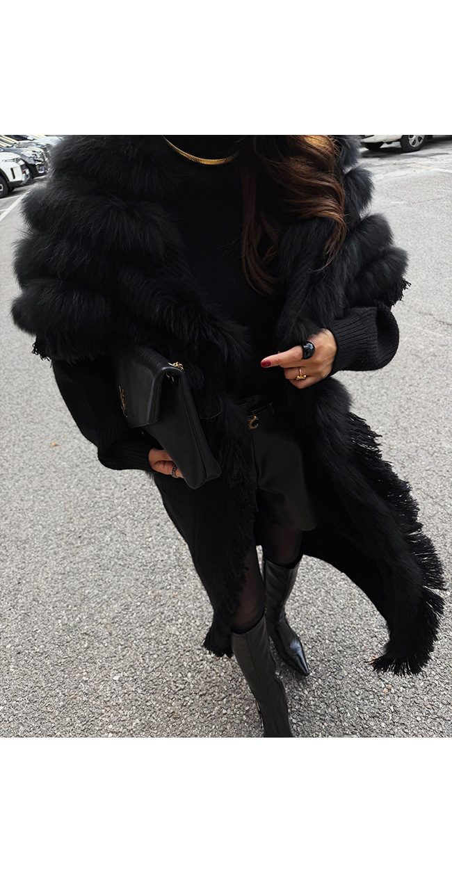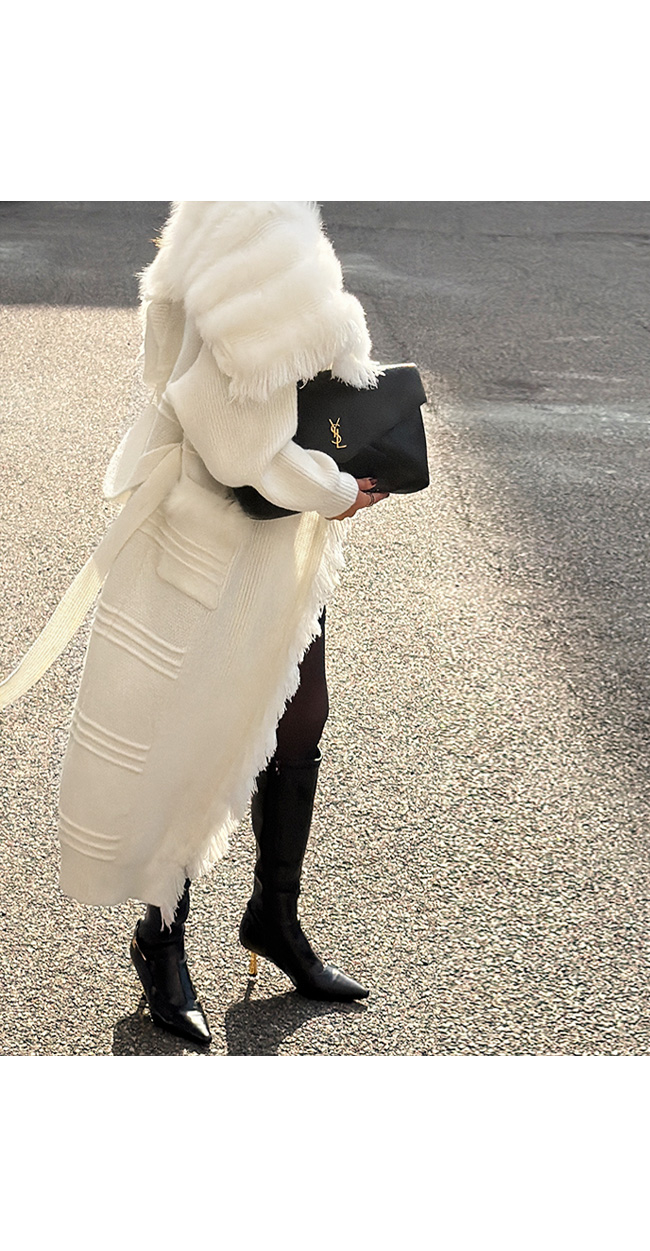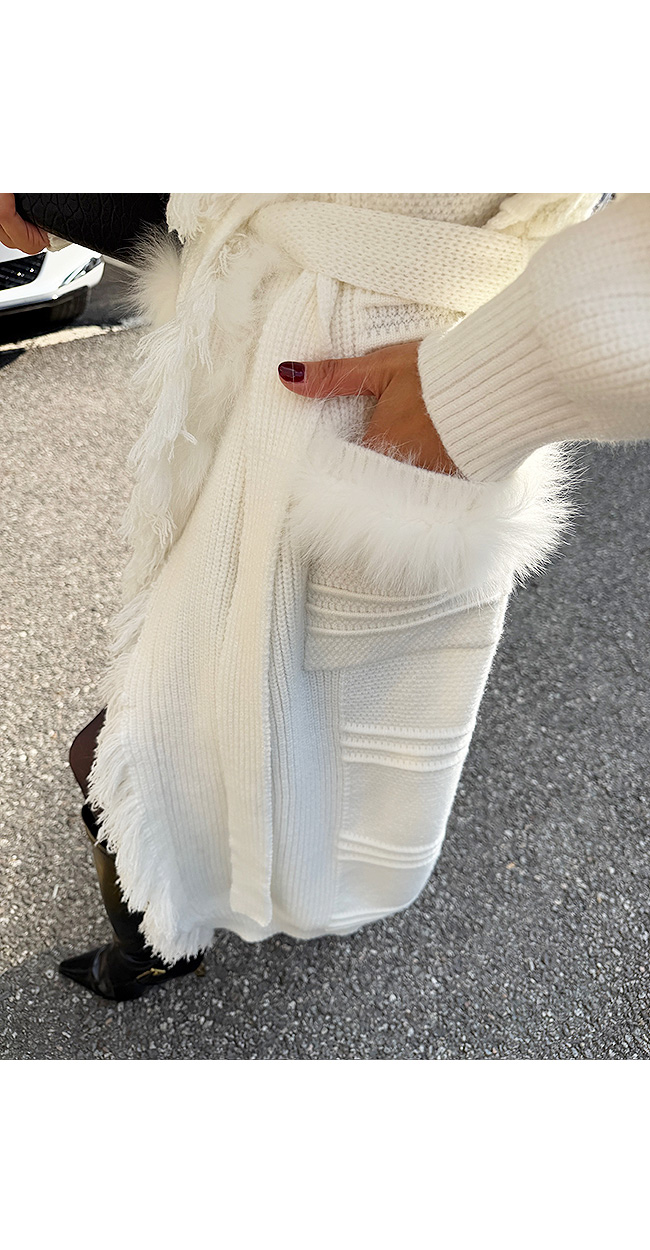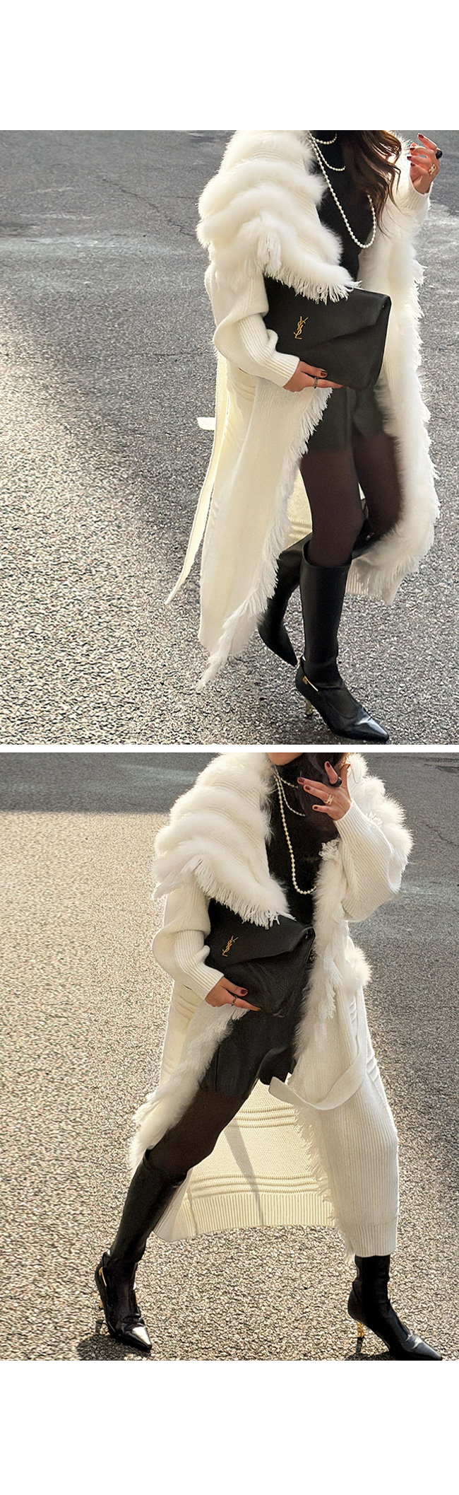 리얼 폭스 퍼 배색 니트 가디건을 소개해드릴게요.