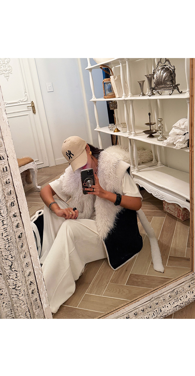 루즈하게 떨어지는 핏과 힙을 덮는 여유로운 기장감으로