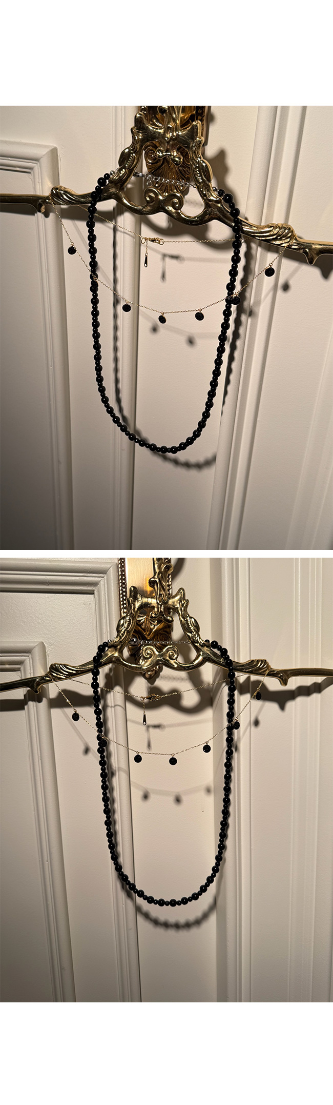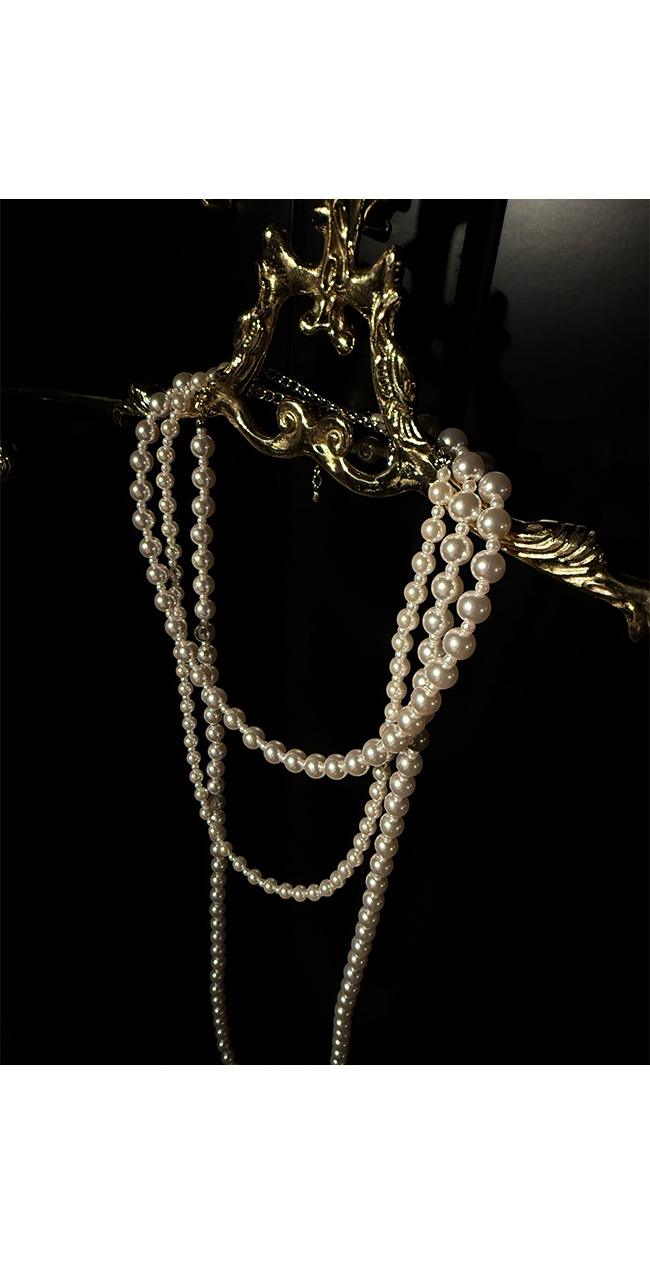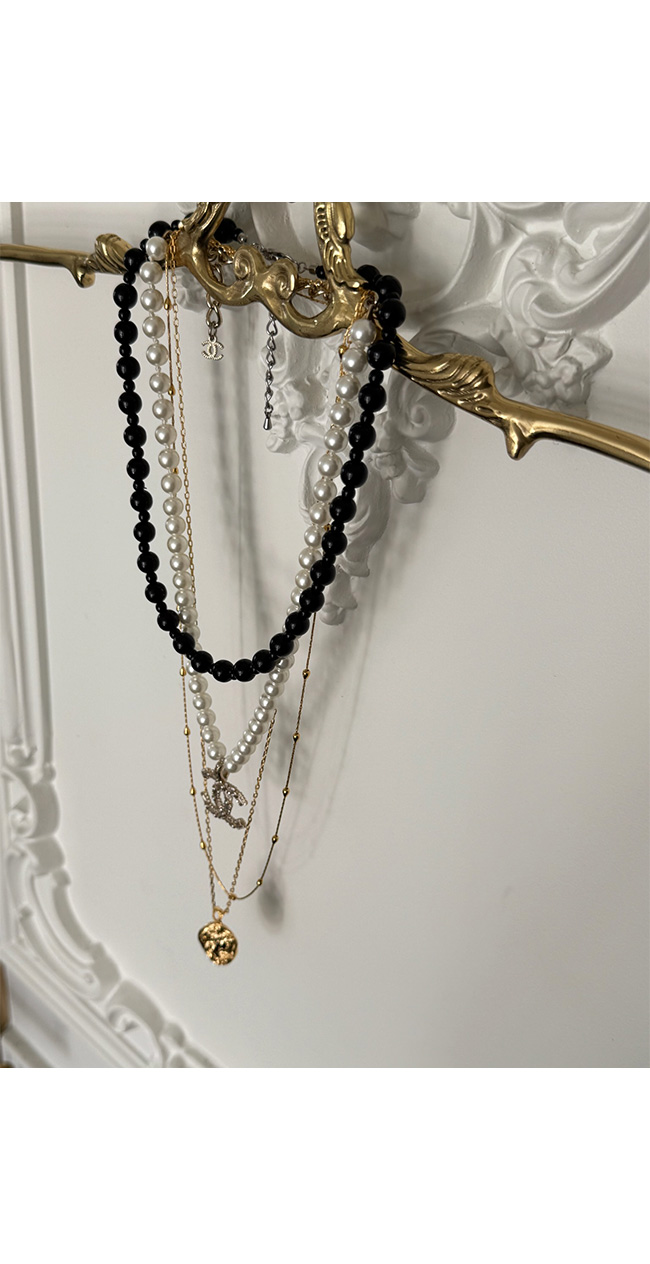 세 줄을 모두 함께 착용하면 클래식하면서도 화려한 포인트로,