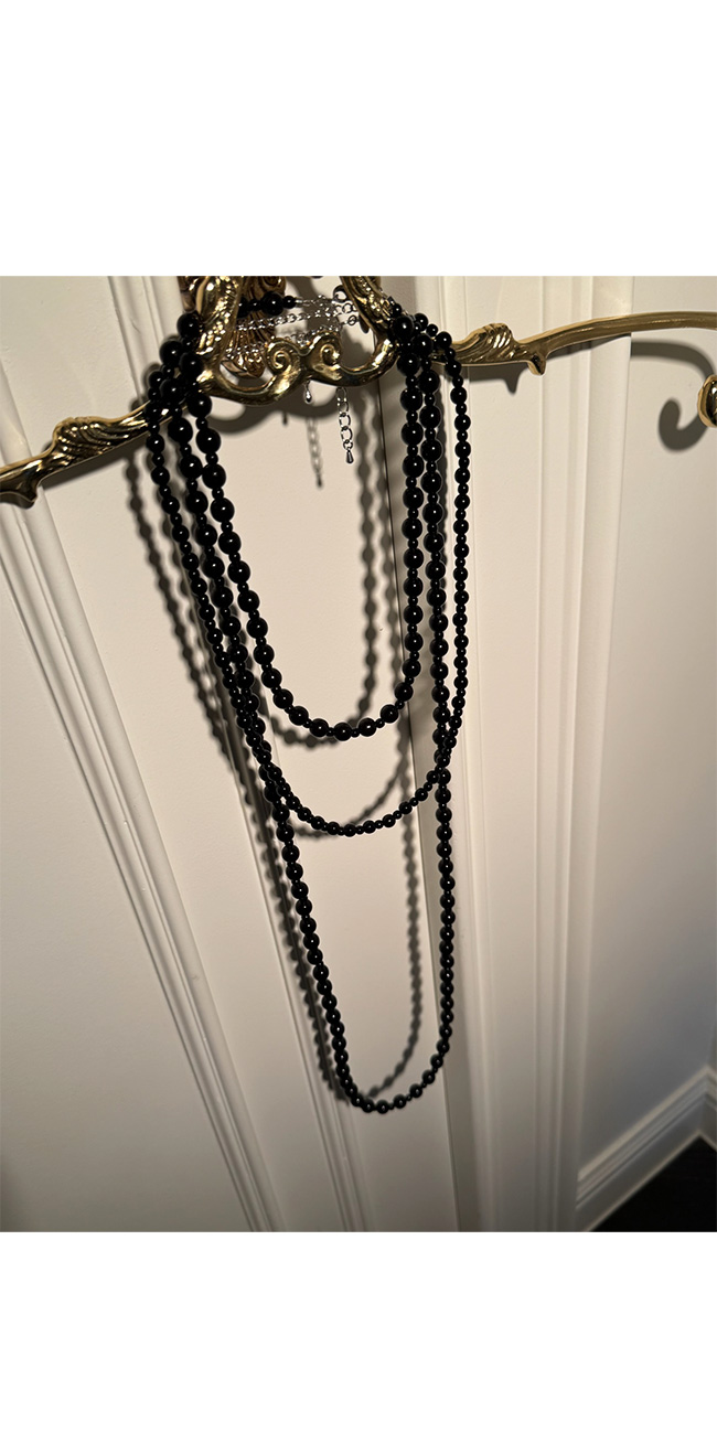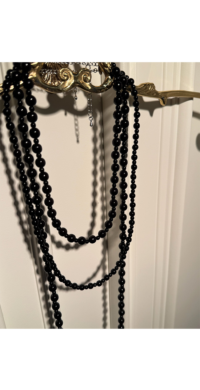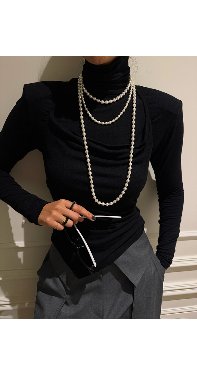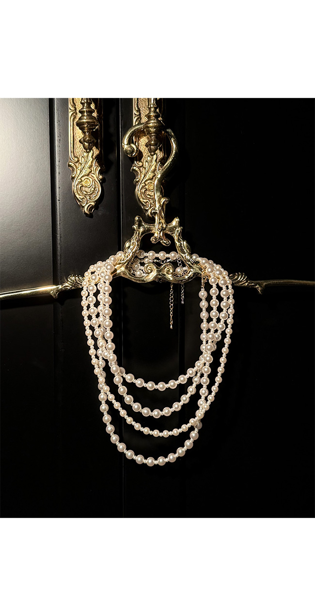세 줄을 모두 함께 착용하면 클래식하면서도 화려한 포인트로,