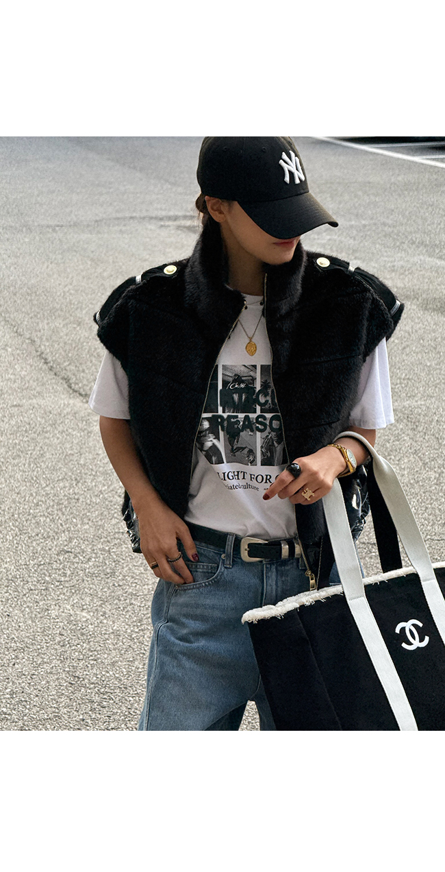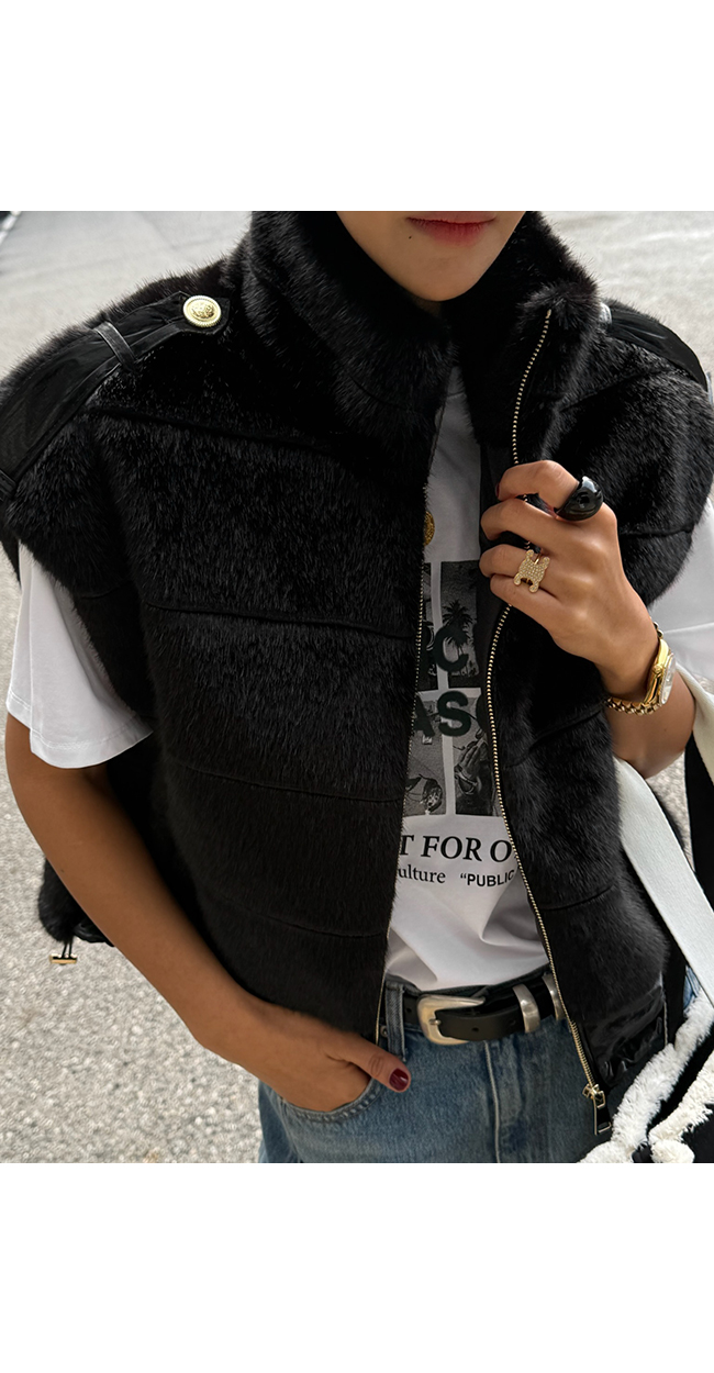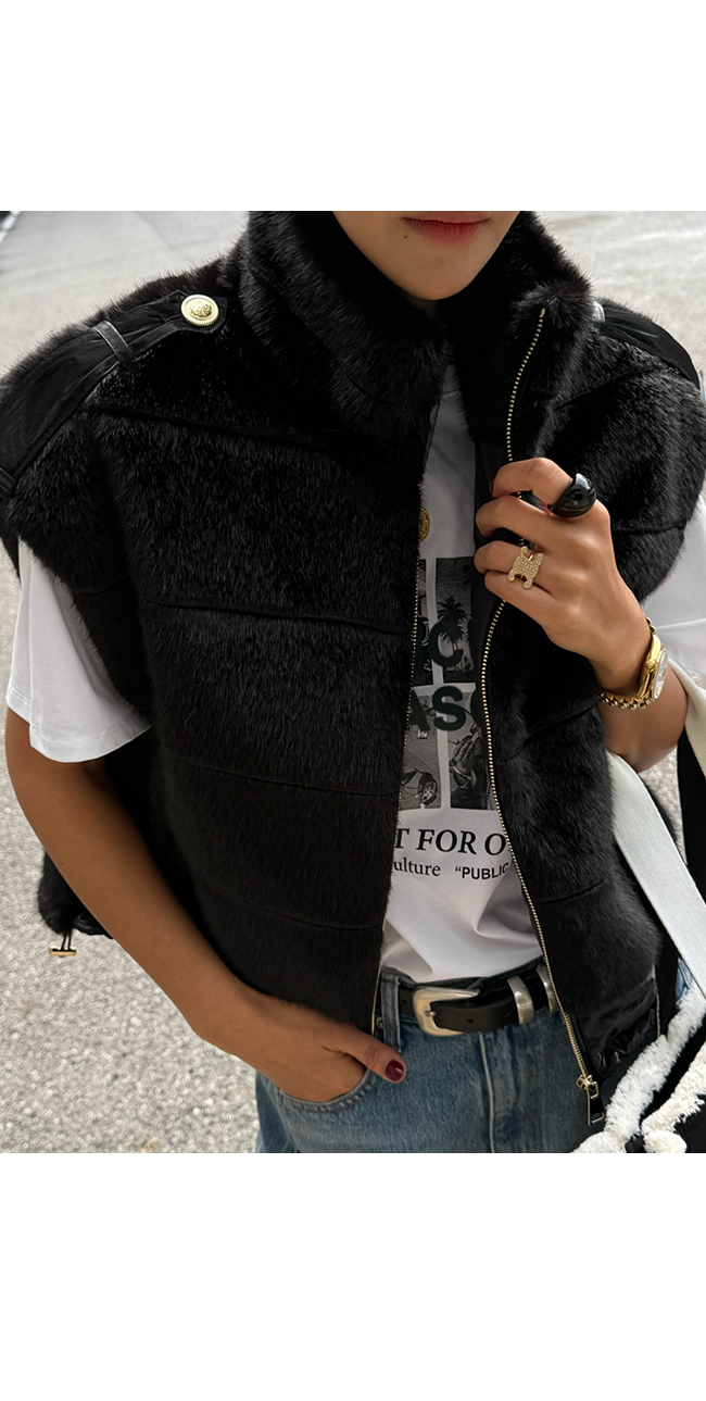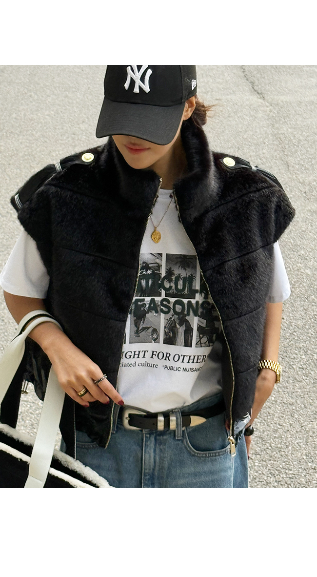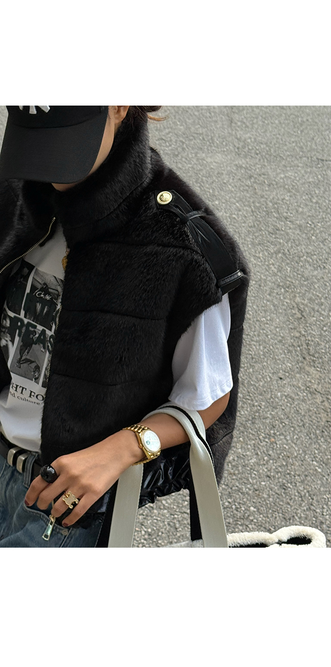 감각적으로 즐길 수 있는 퍼 패딩 베스트입니다.