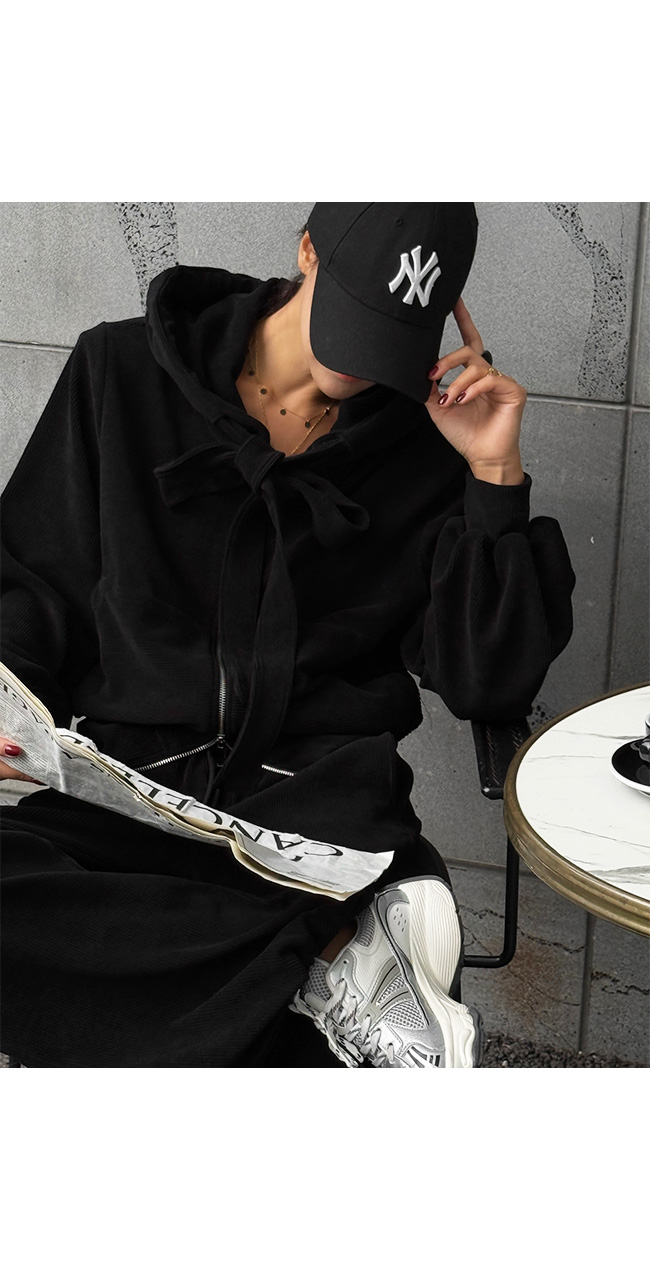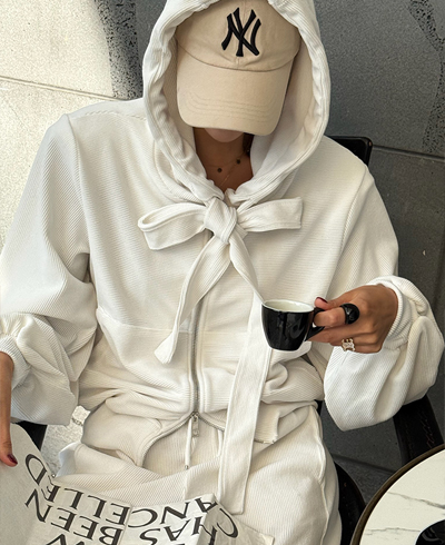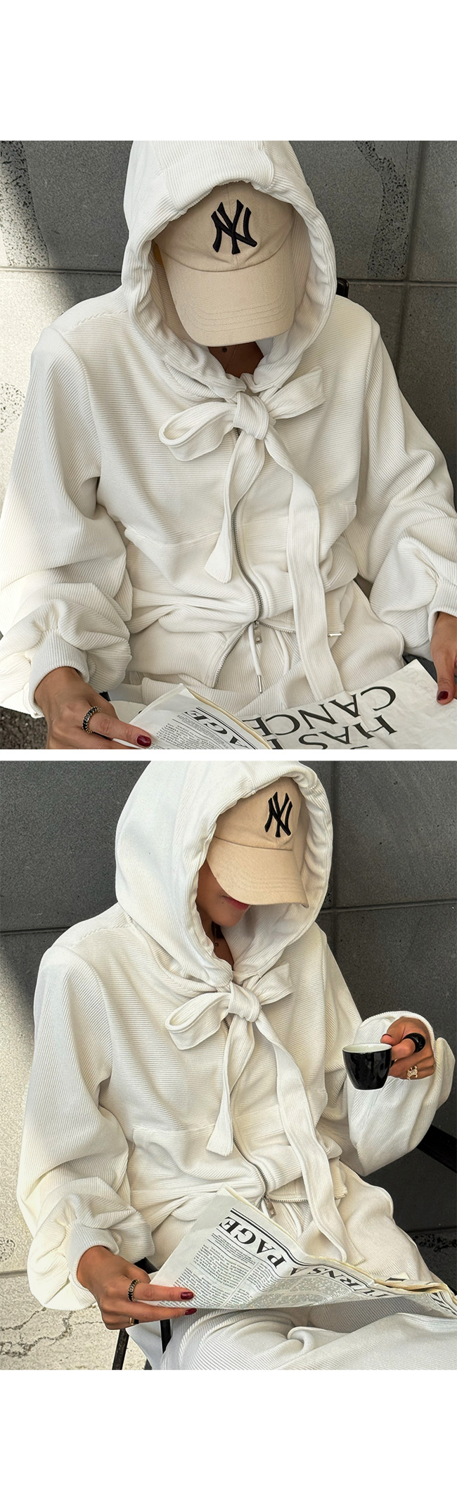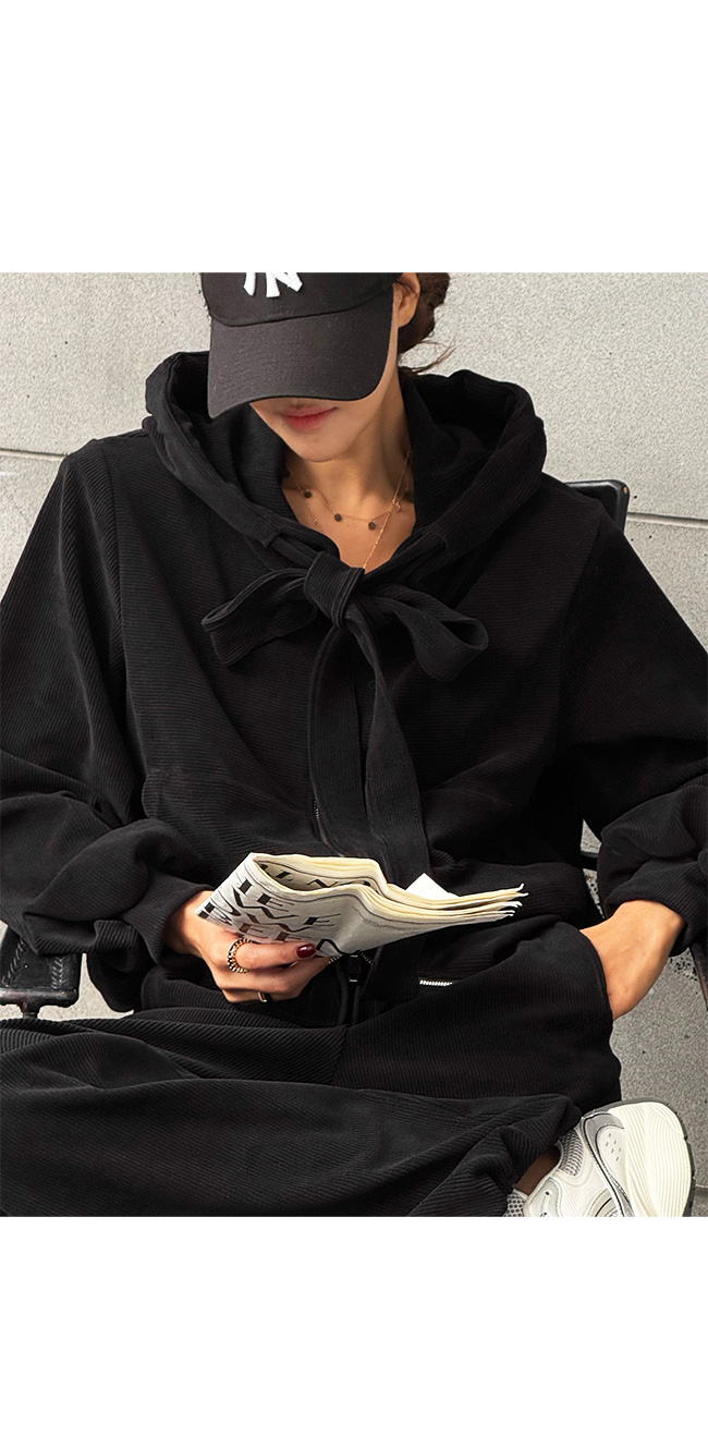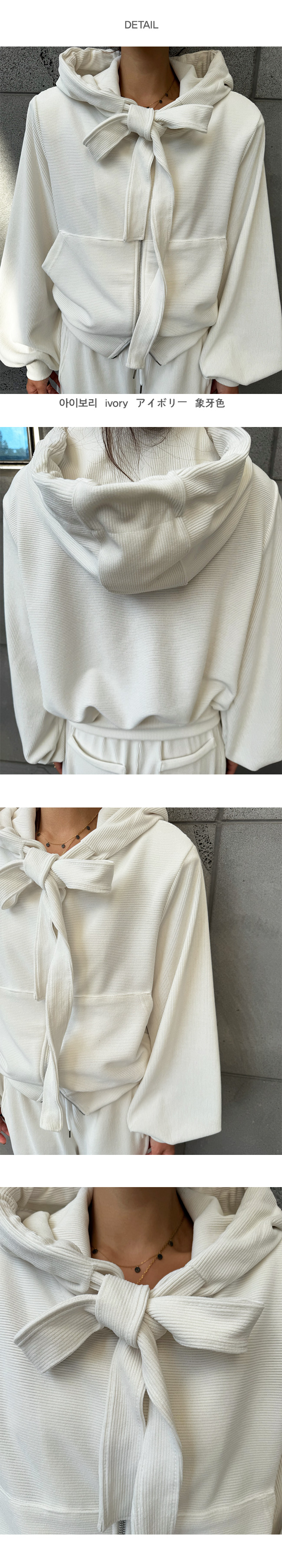후드 중앙에는 와이드한 스트랩 리본 디테일을 더해