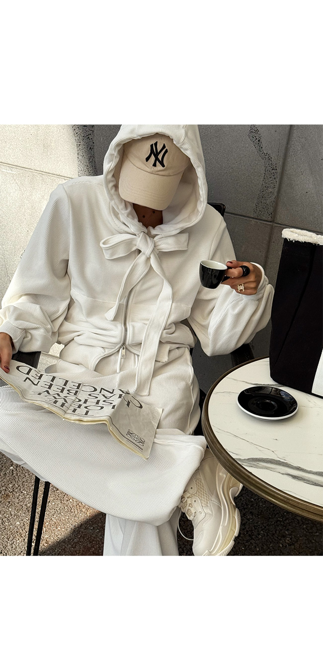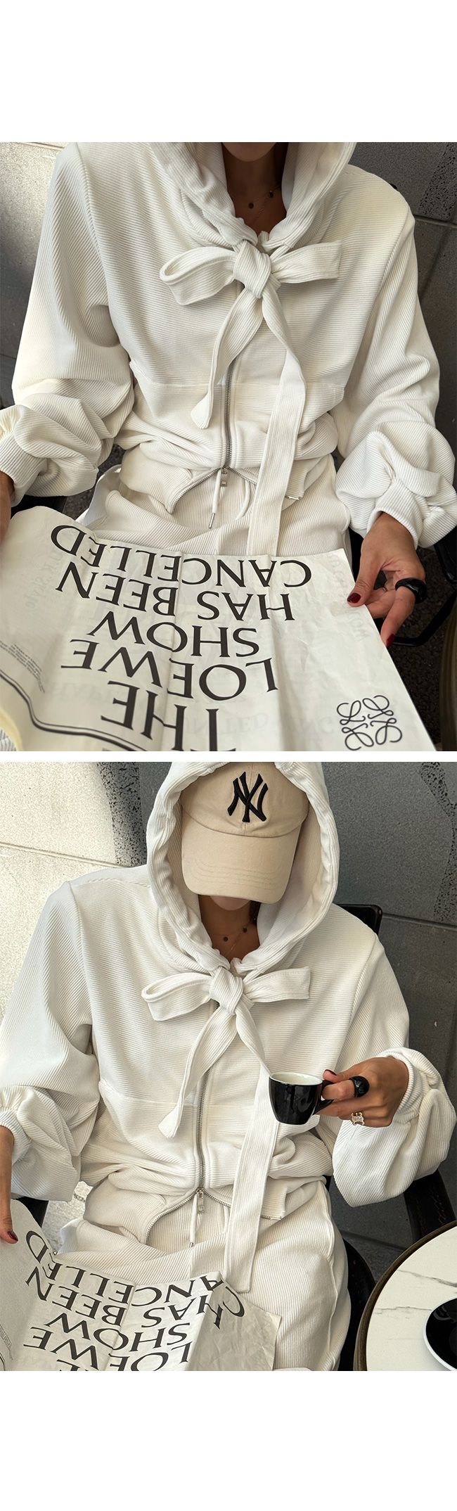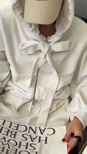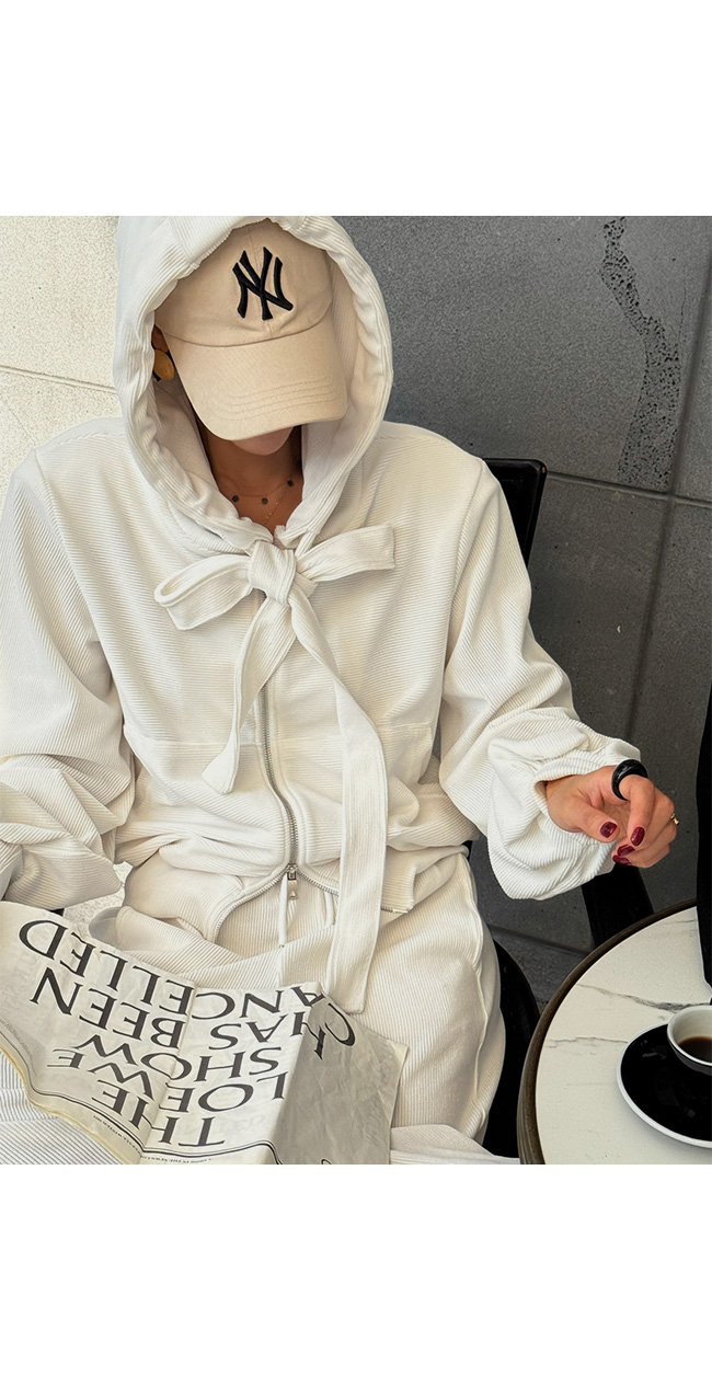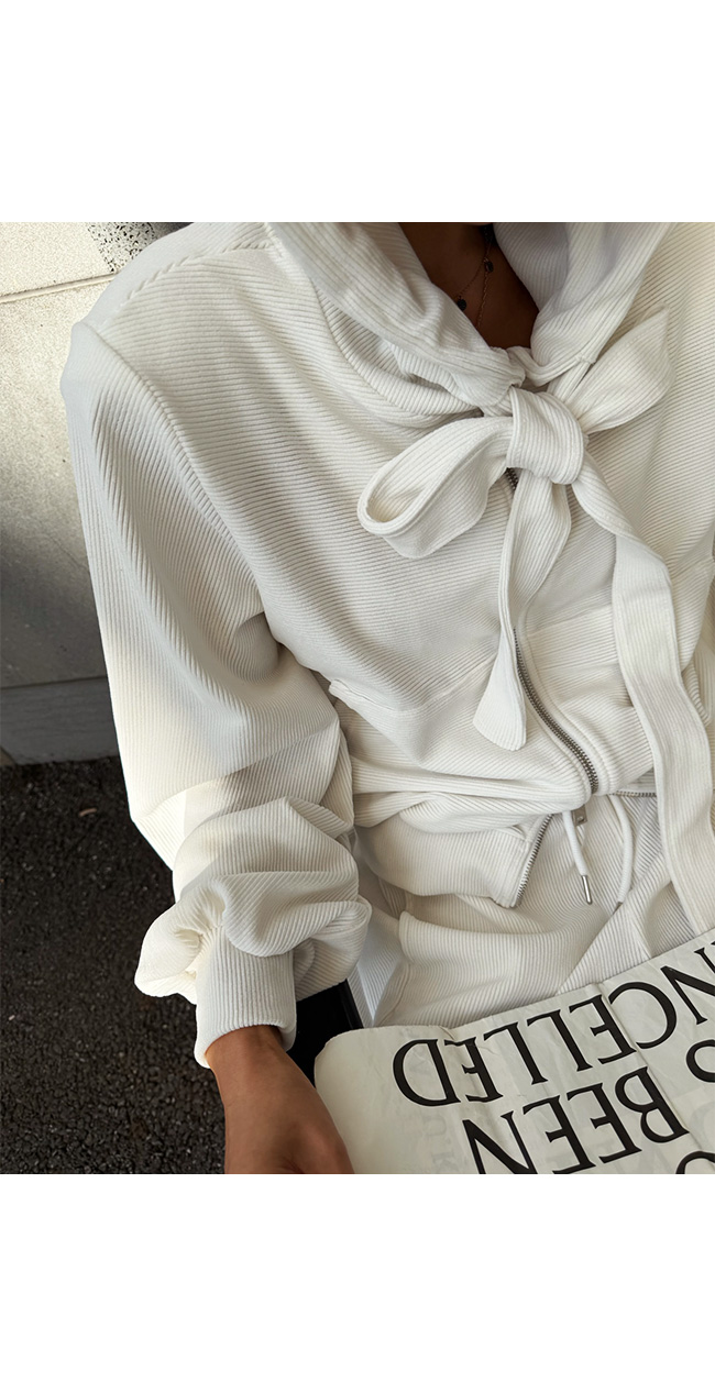 후드 중앙에는 와이드한 스트랩 리본 디테일을 더해
