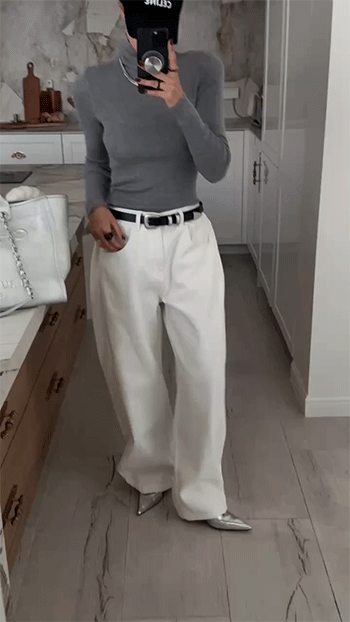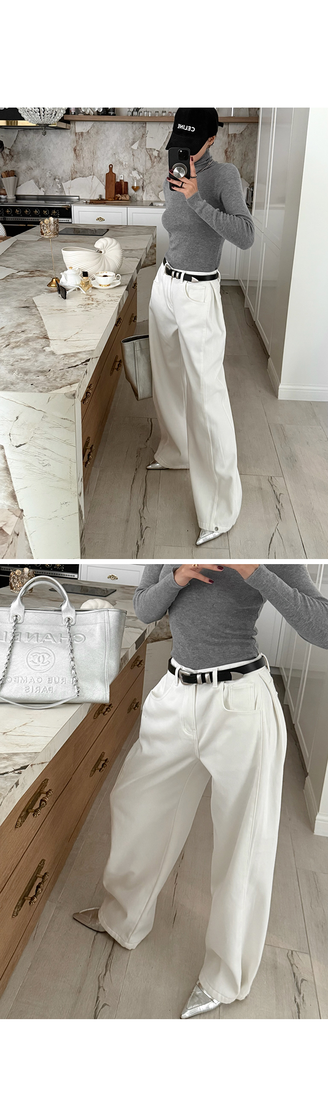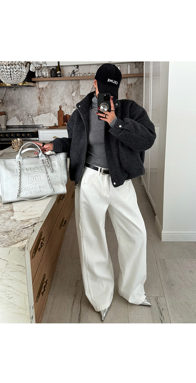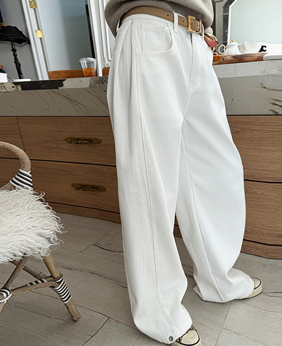 와이드 핏 화이트 데님 팬츠를 소개해드릴게요.