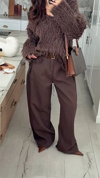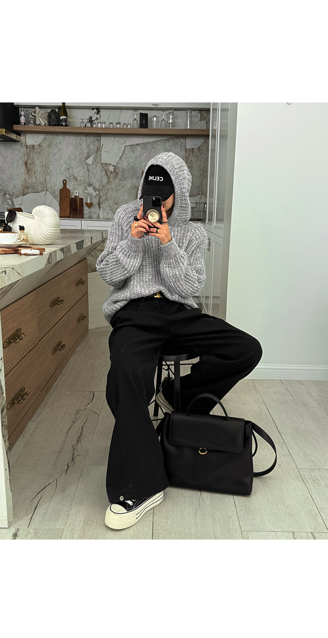 바디 라인을 자연스럽게 커버하는 여유로운 와이드 실루엣이