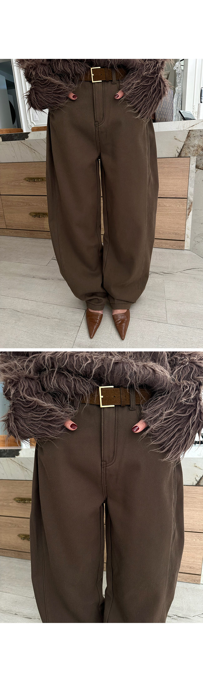 - 안쪽면이 쮸리나 기모가 가공이된 소재감들은 가공 과정에 의해 약간의 먼지가 발생할 수 있으니, 세탁후 입어주세요.