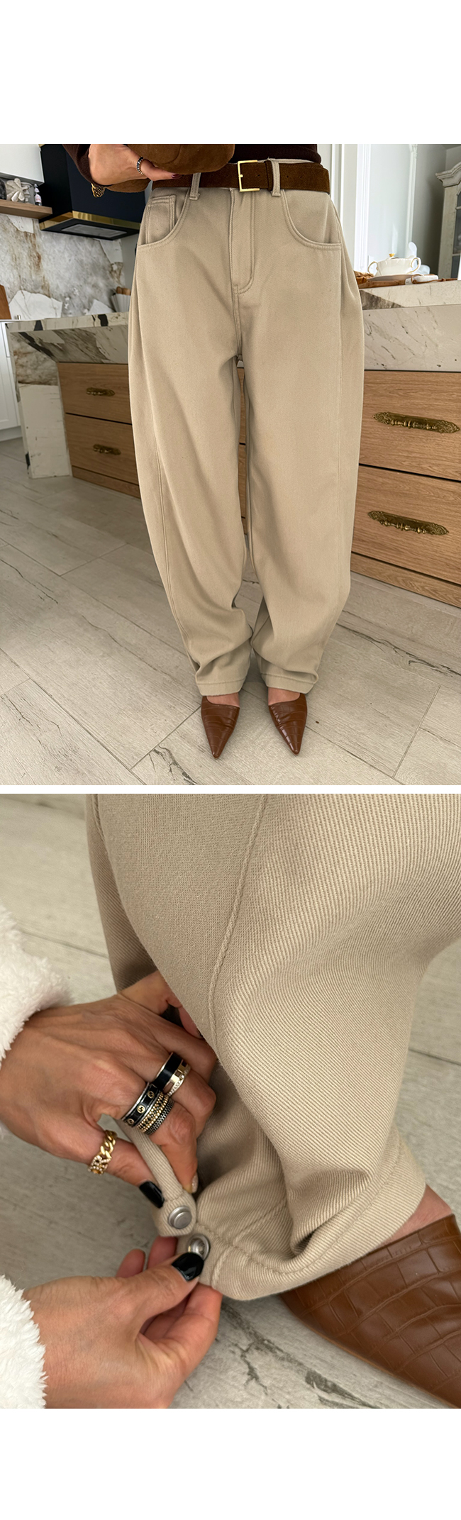아델도 기모밑단스냅버튼팬츠