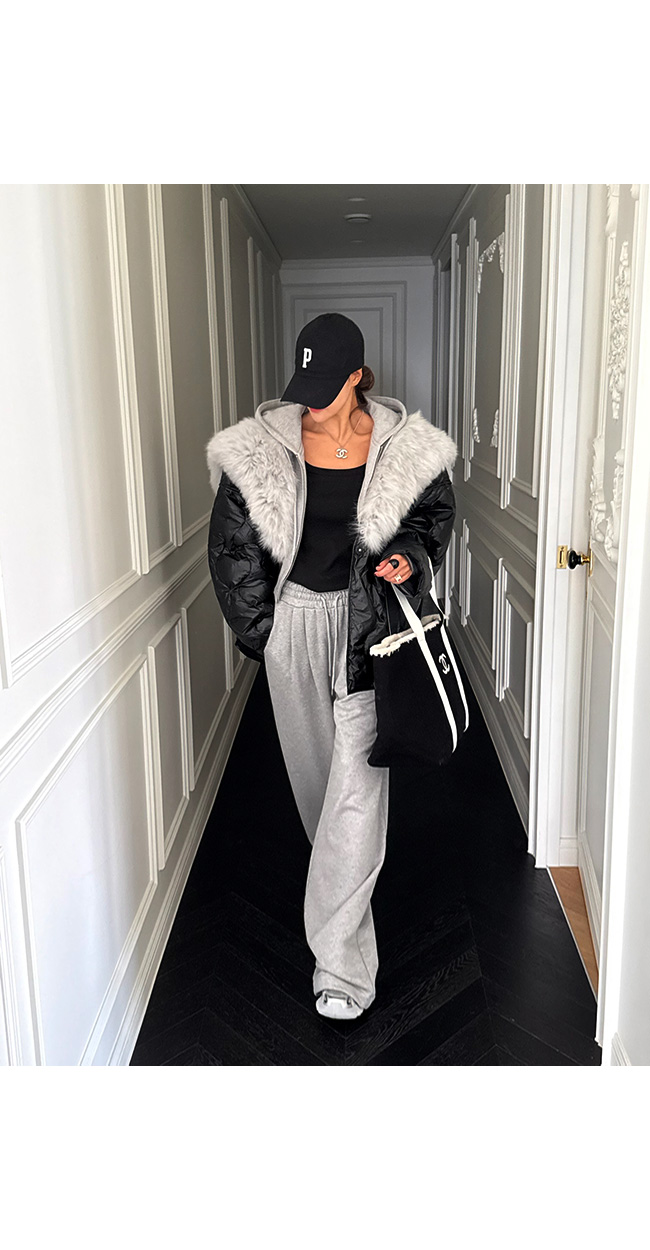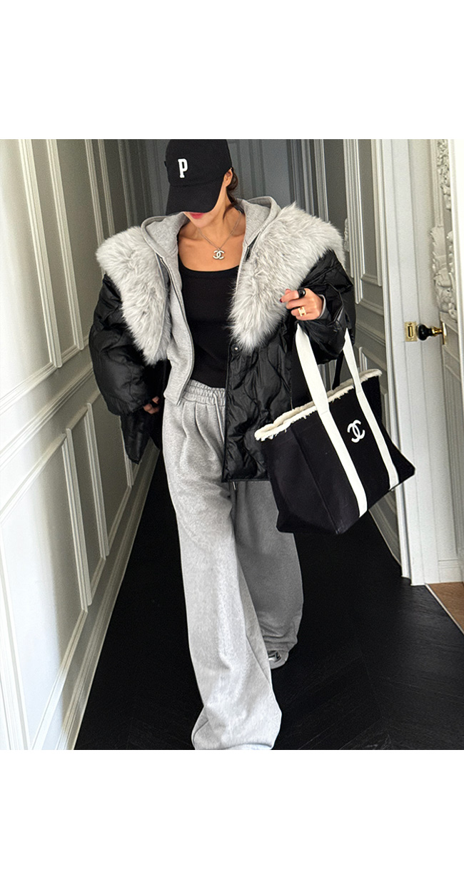 퍼를 더하면 고급스럽고 세련된 실내·야외룩으로,