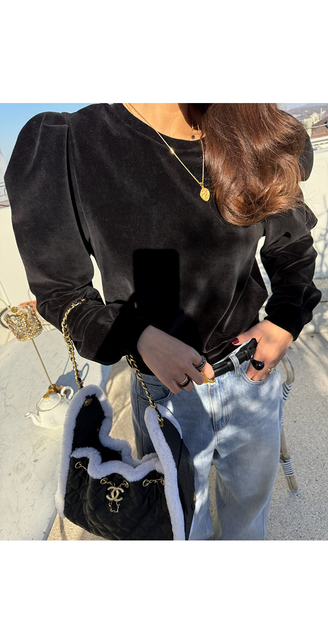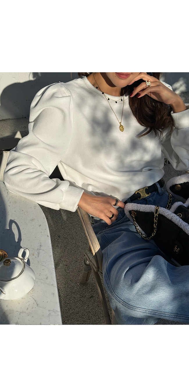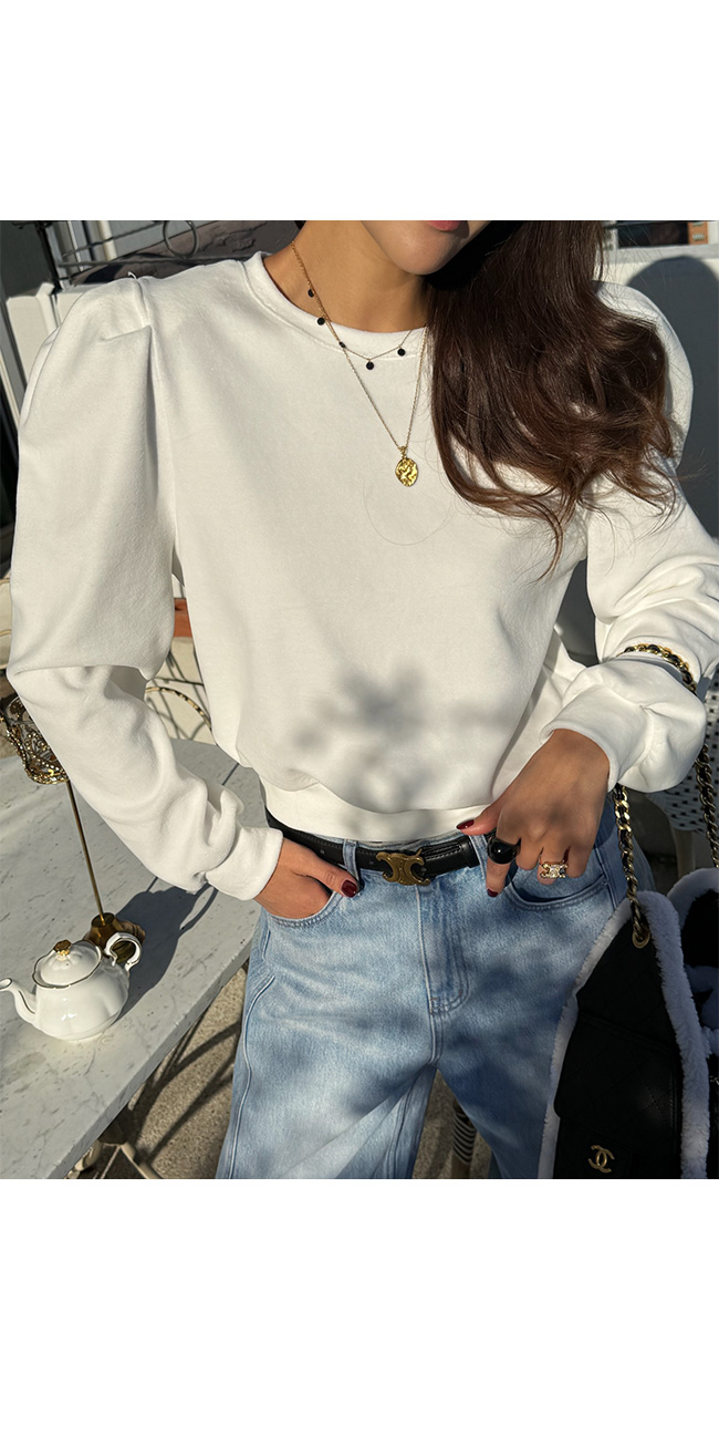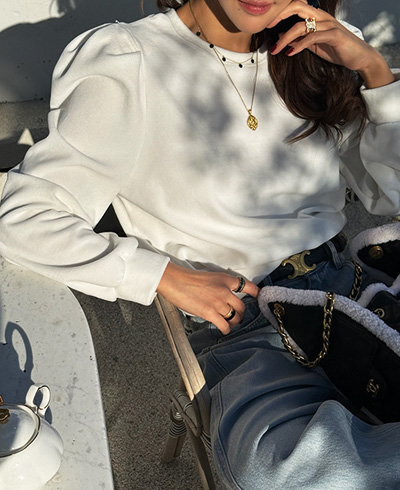 여성스럽게 잡힌 퍼프 숄더 실루엣이