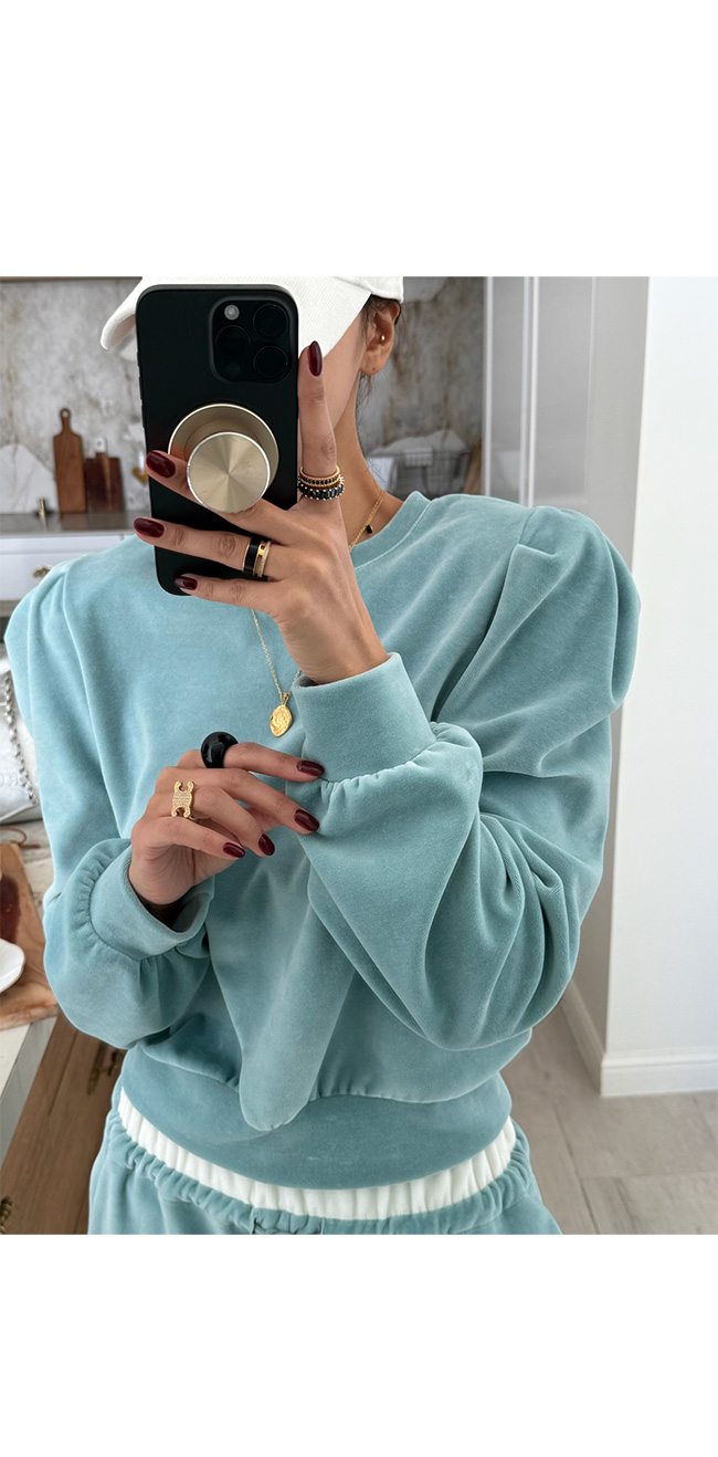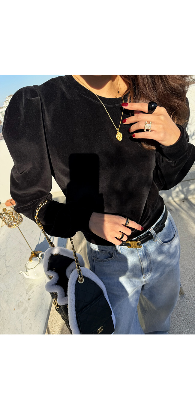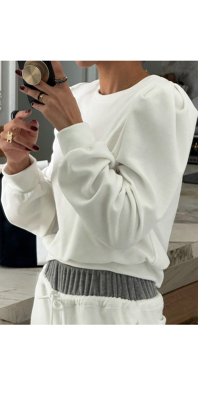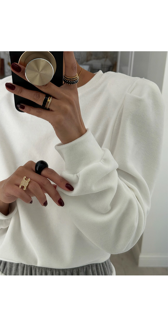 여성스럽게 잡힌 퍼프 숄더 실루엣이
