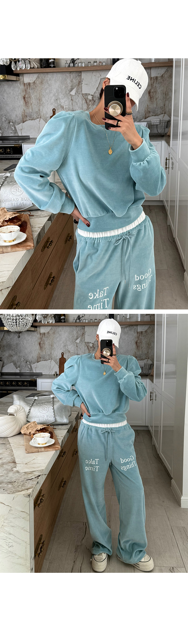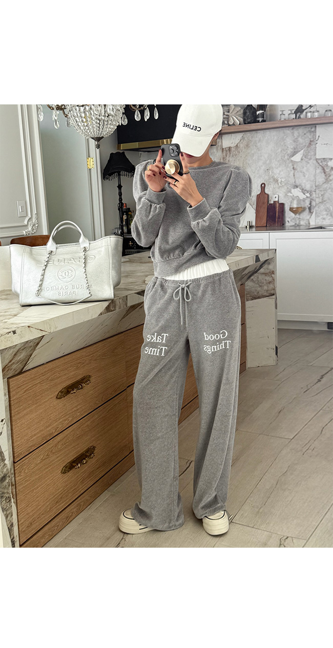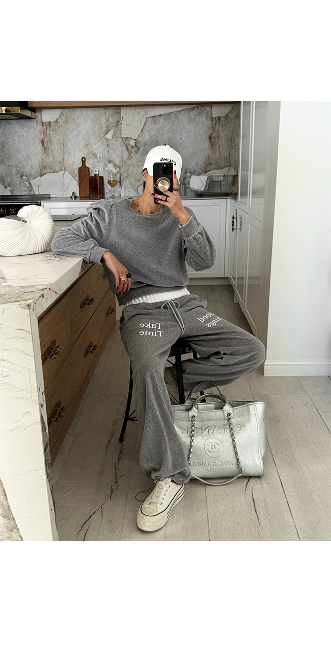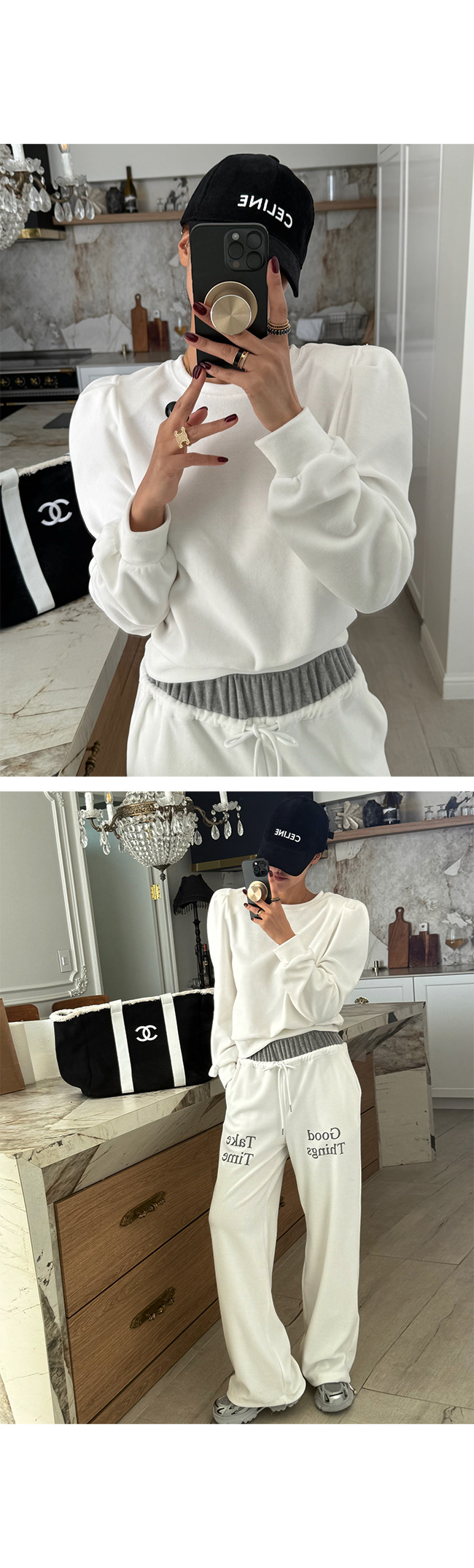 같은 소재의 맨투맨과 셋업으로 착용하면
