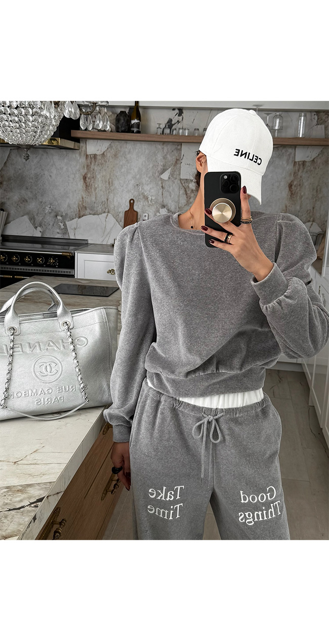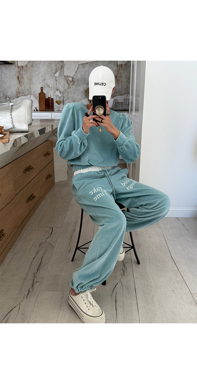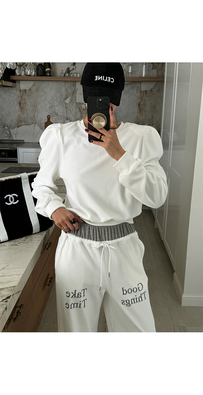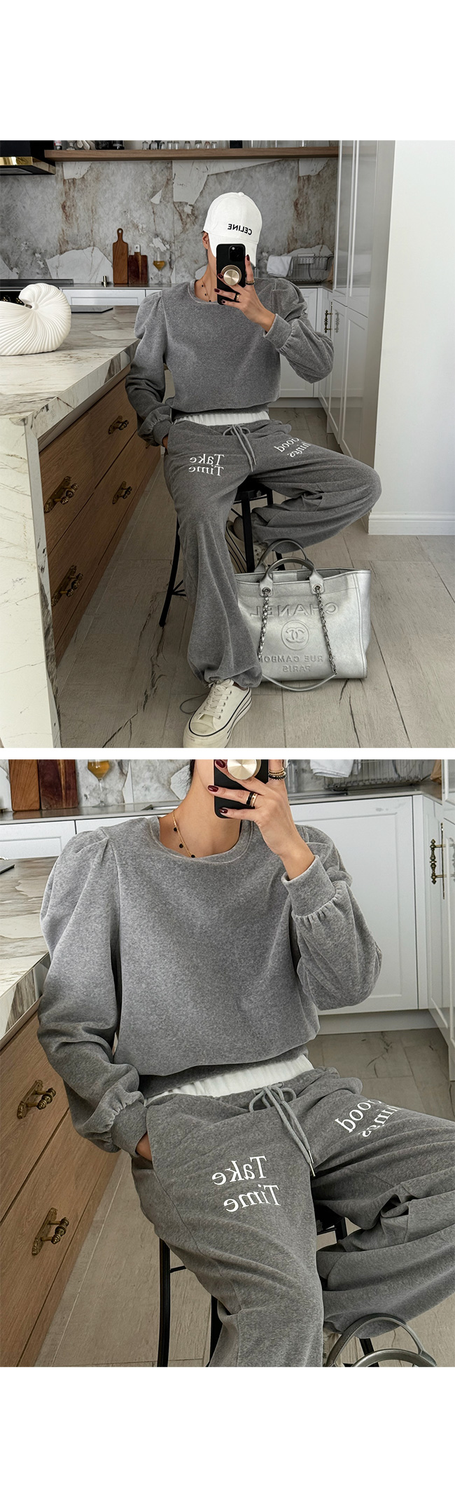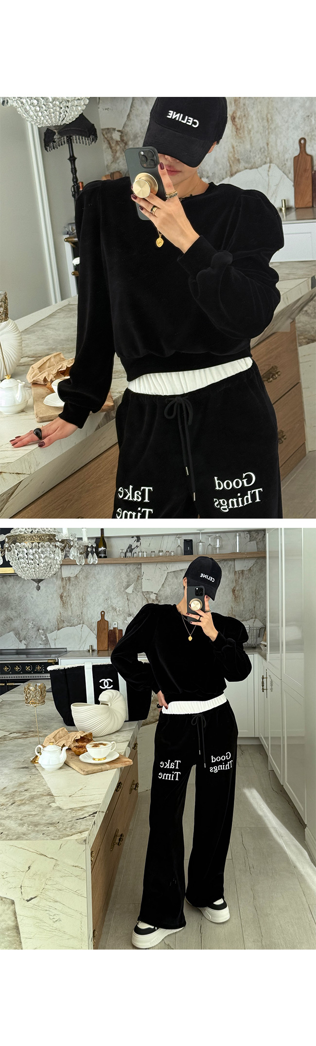 같은 소재의 맨투맨과 셋업으로 착용하면