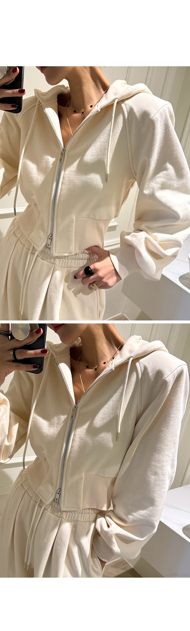 크롭 집업 후드 셋업을 소개해드릴게요.