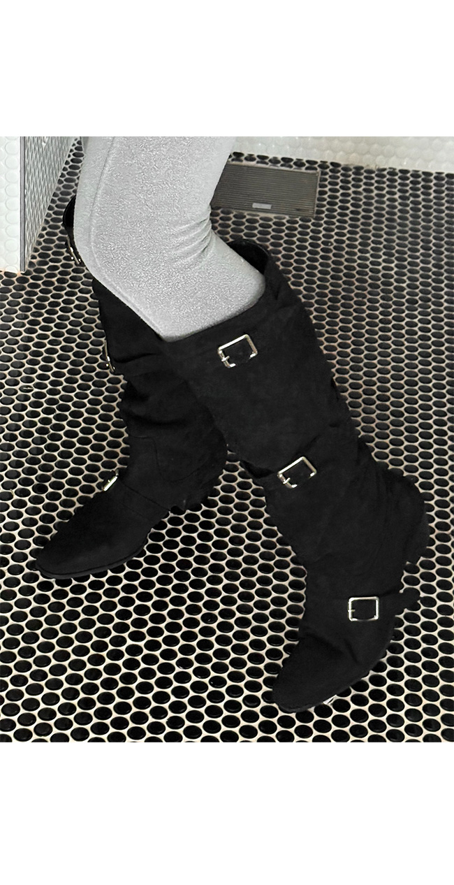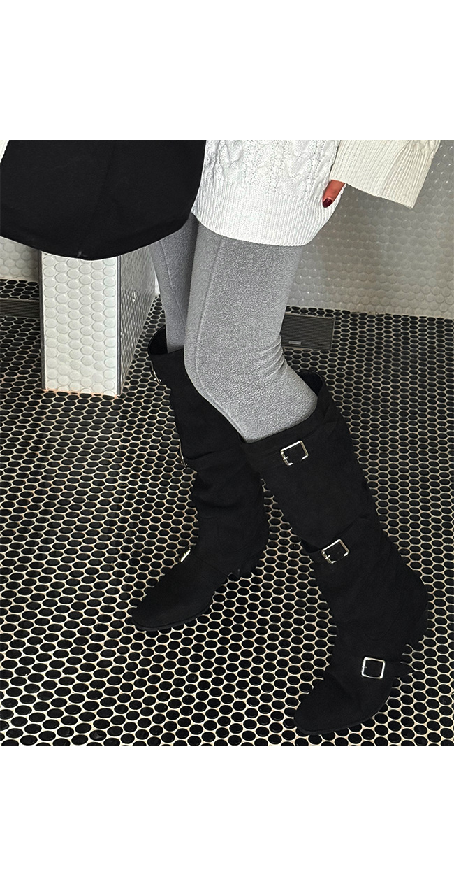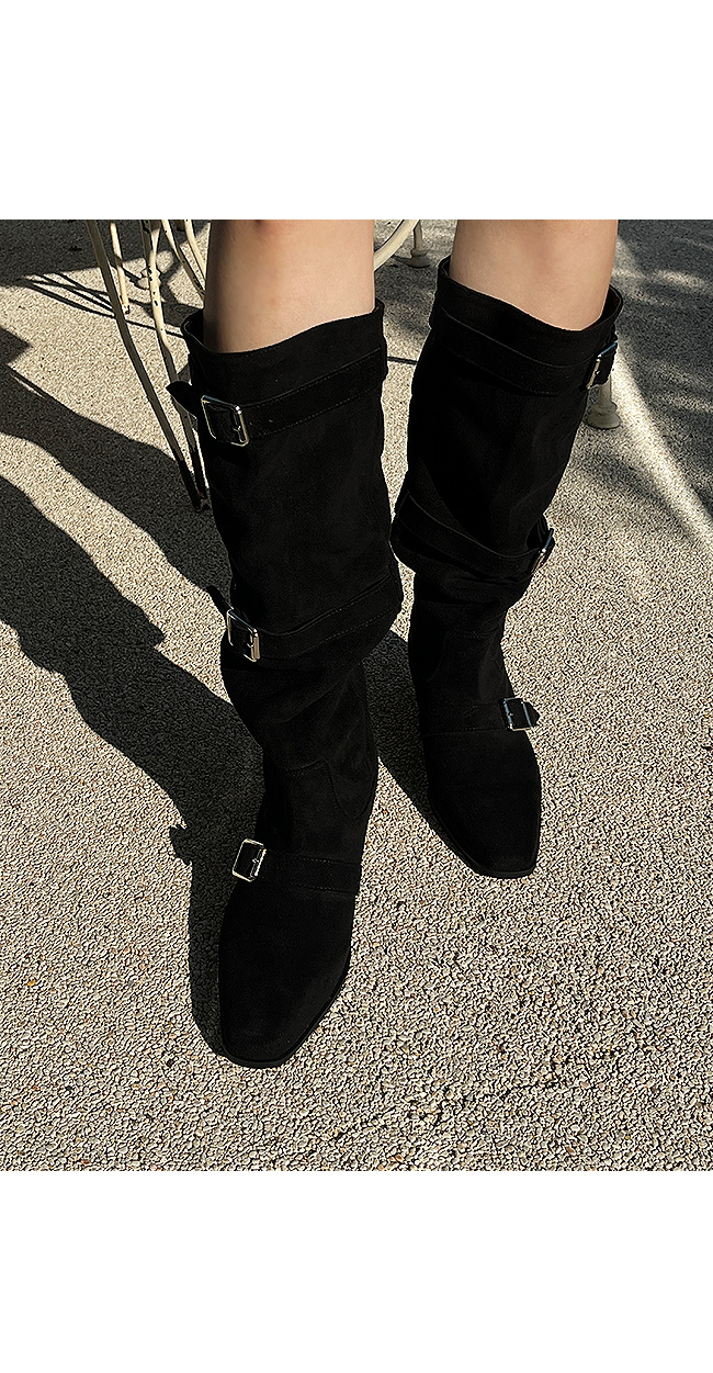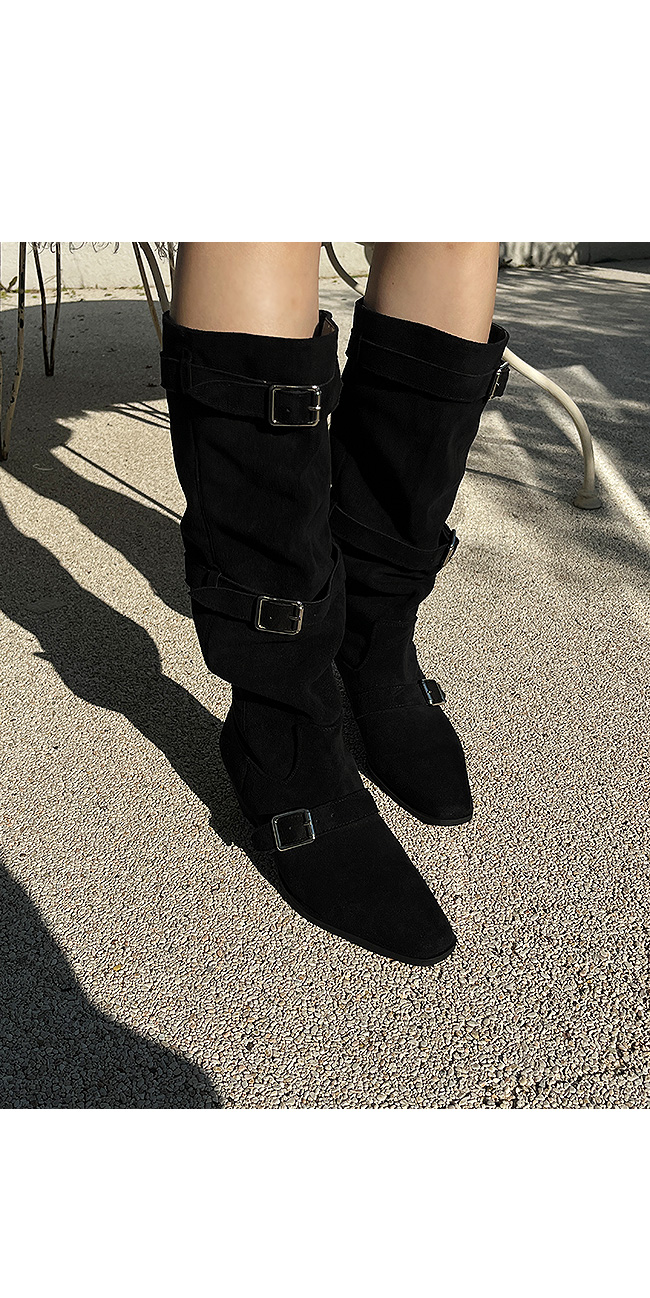 - 세 줄의 버클 스트랩 디테일의 스타일리시한 포인트
