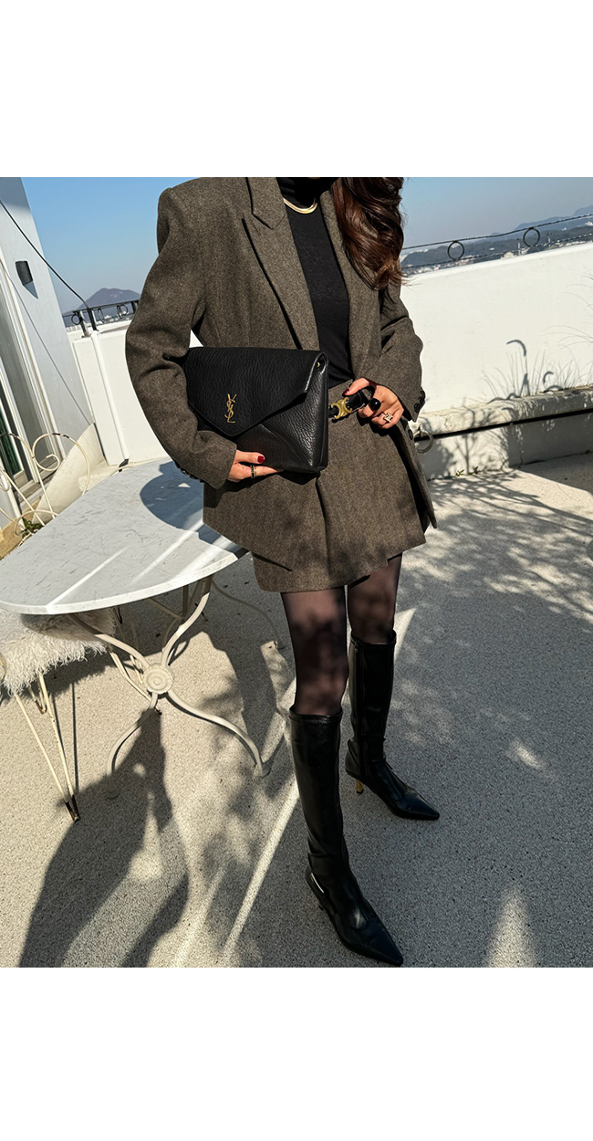 클래식한 감성이 느껴지는 헤링본 미니스커트입니다.
