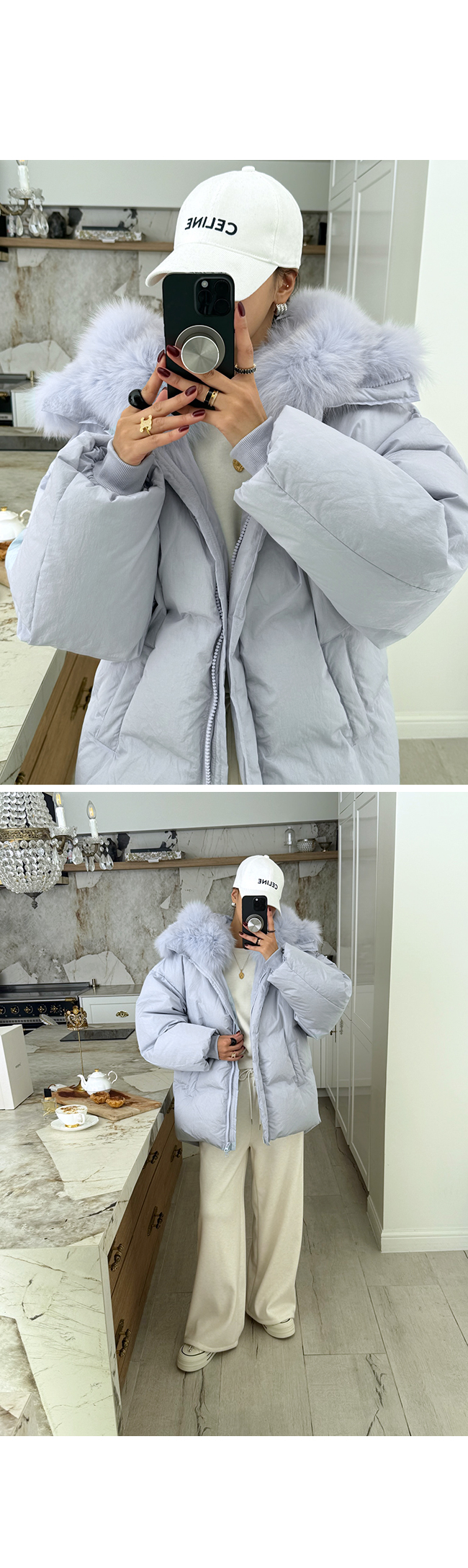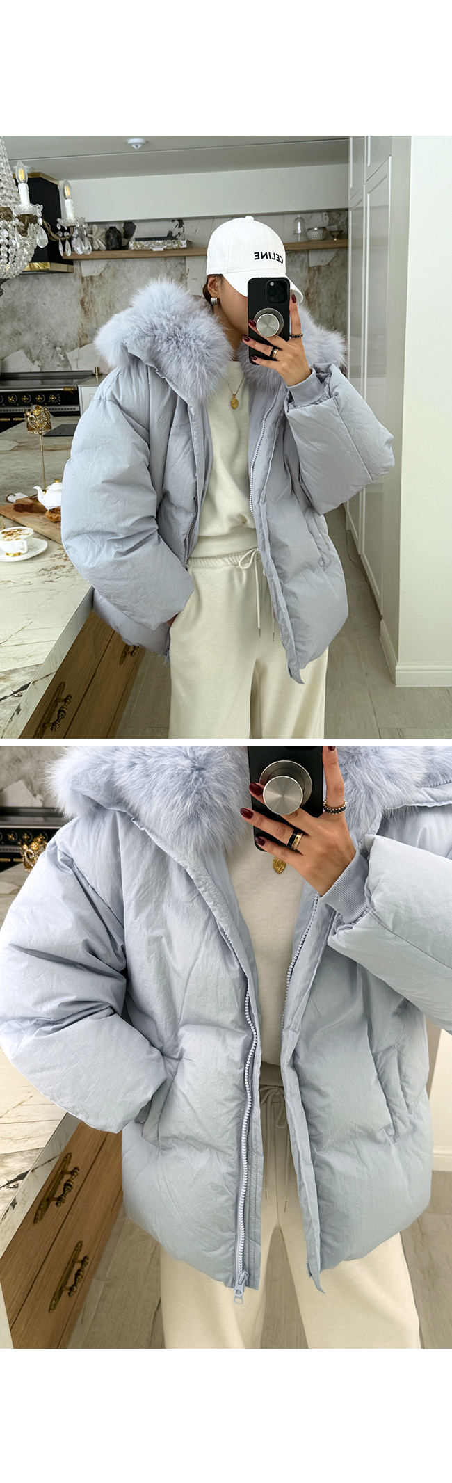 퍼는 부드럽고 결이 고와 전체적인 고급스러움이 더욱 살아나요.