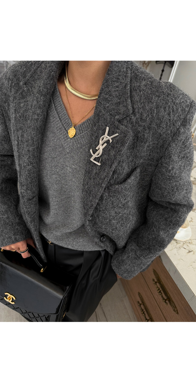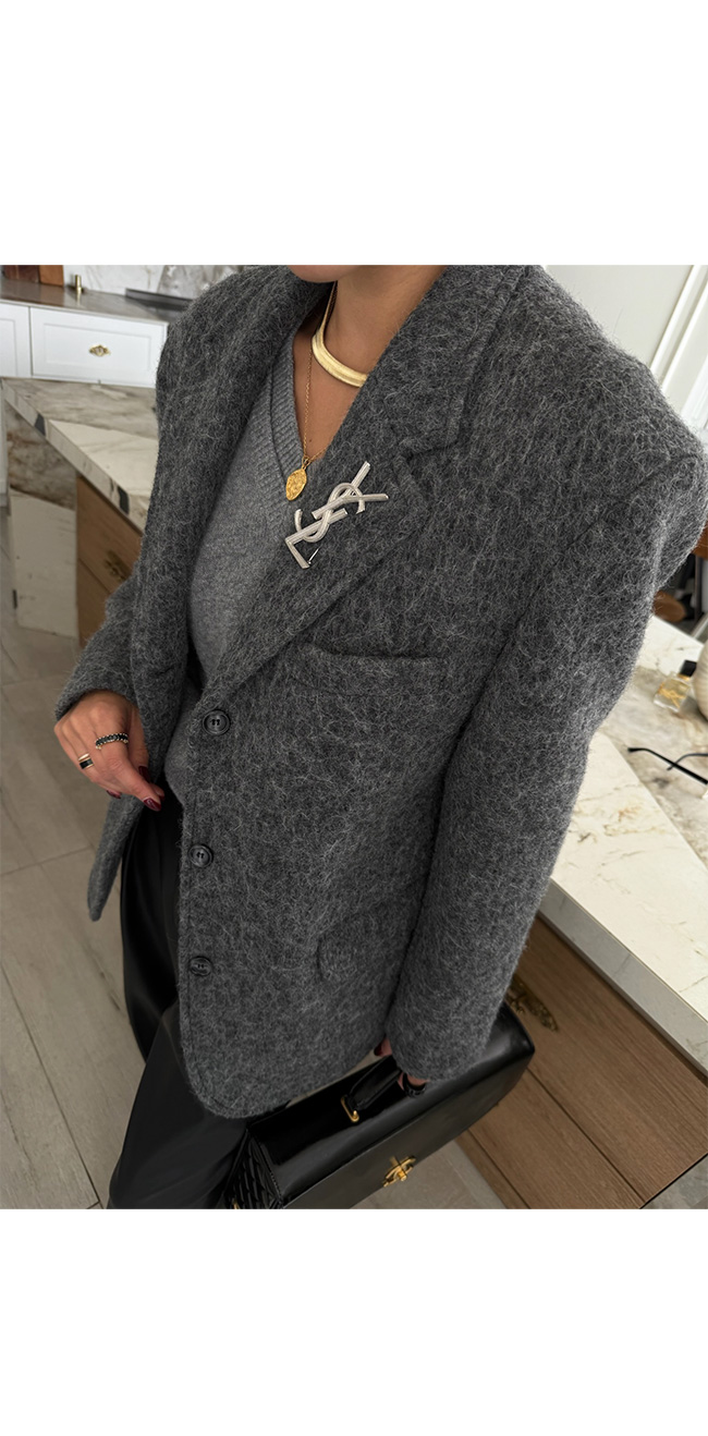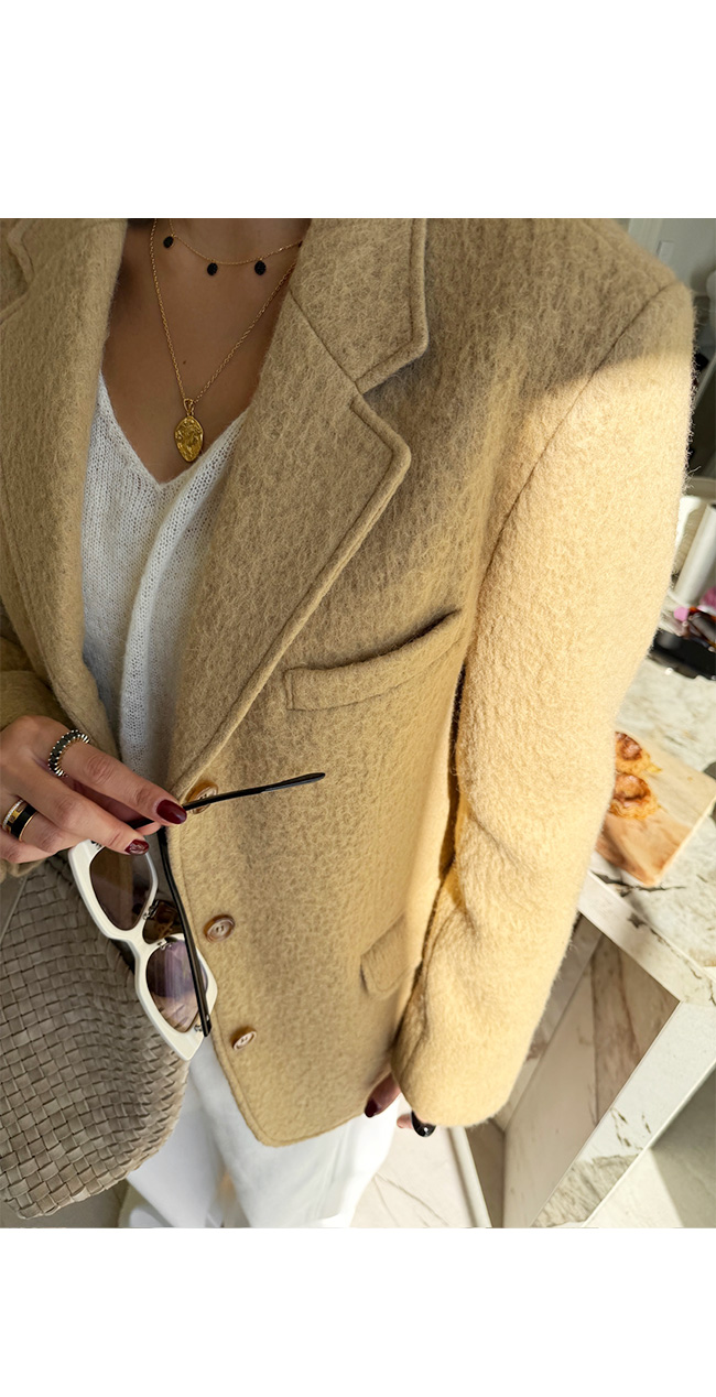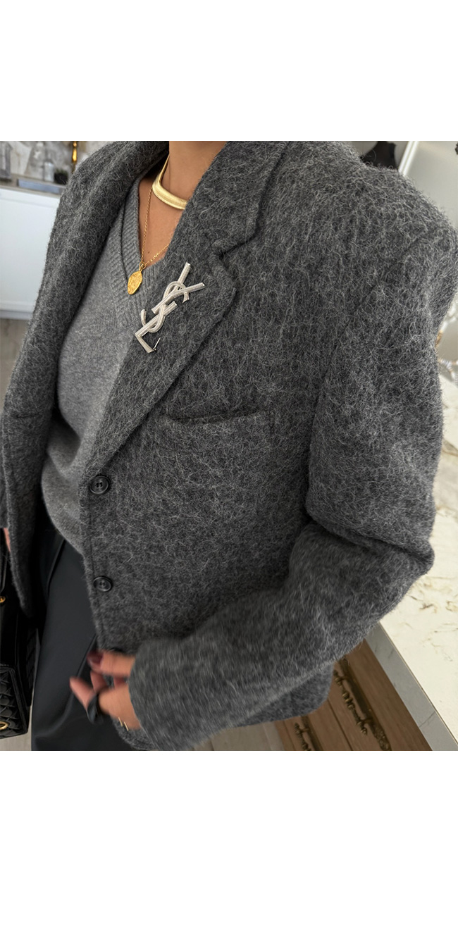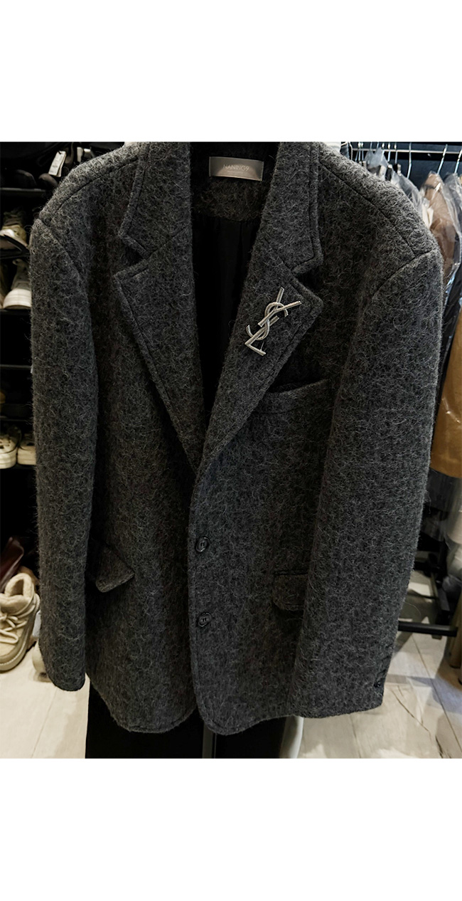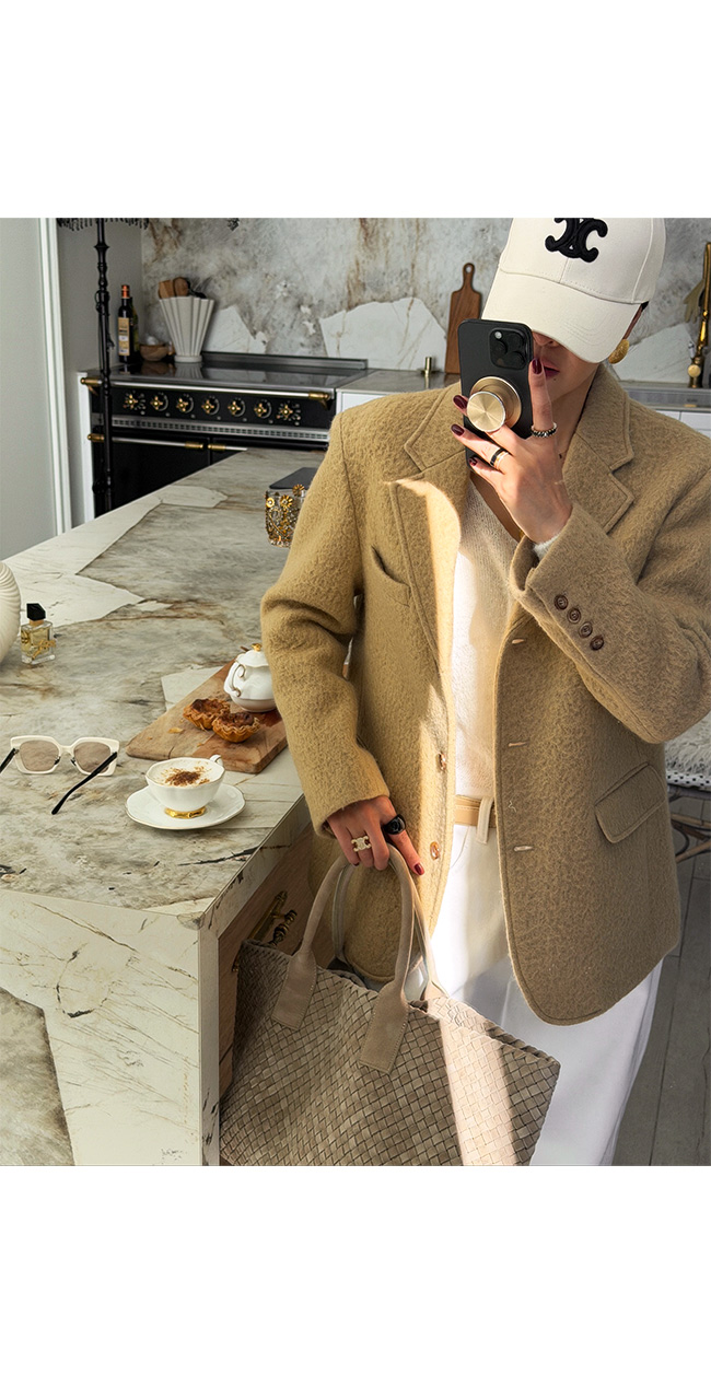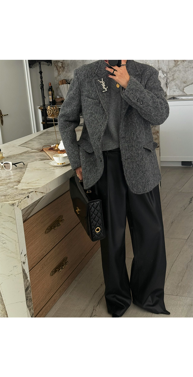 클래식한 테일러드 카라와 쓰리 버튼 디자인으로