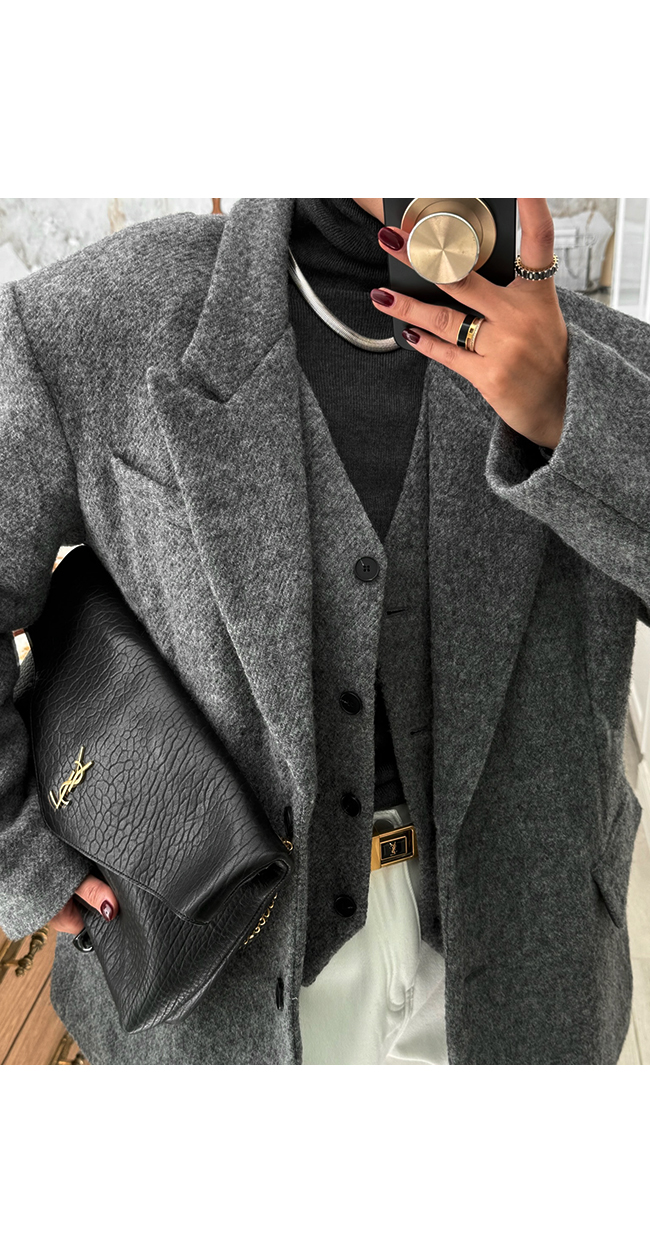 자켓 안에 베스트를 겹쳐 입은 듯한 디자인으로
