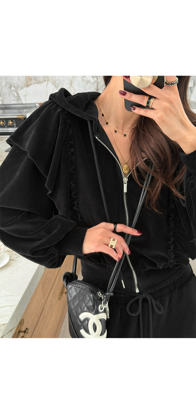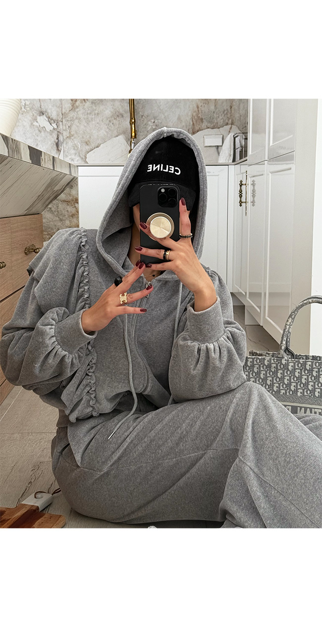 넉넉한 후드와 안정적인 밑단 시보리 처리로
