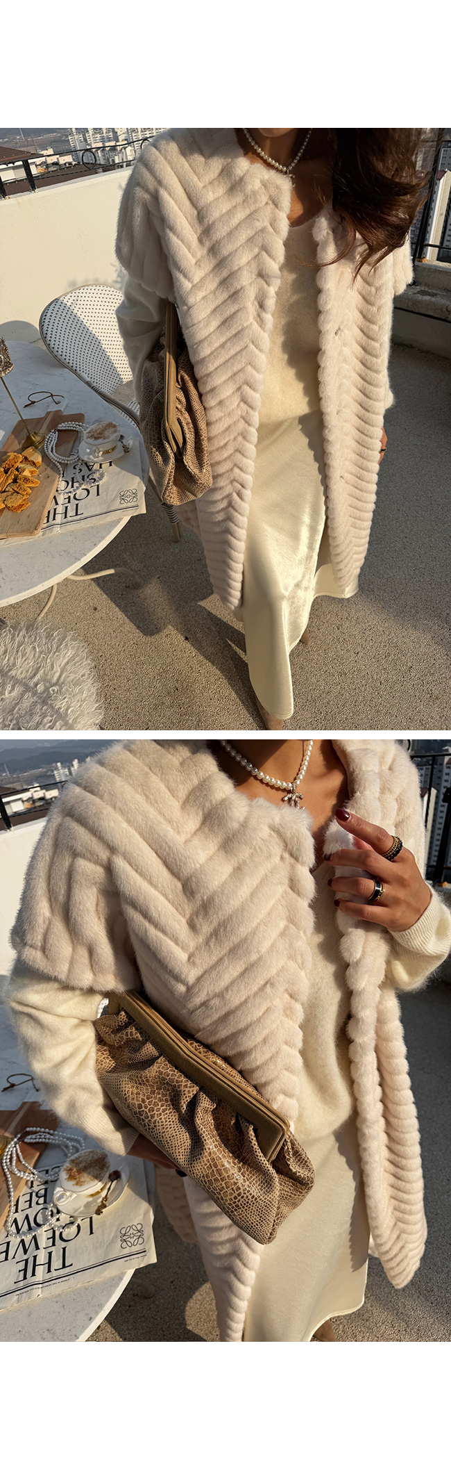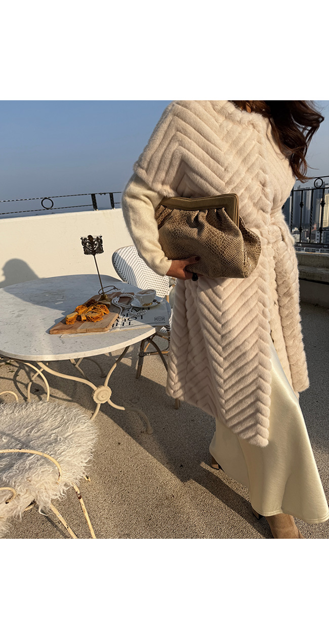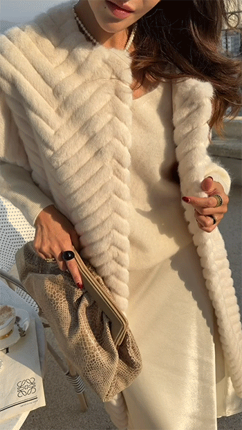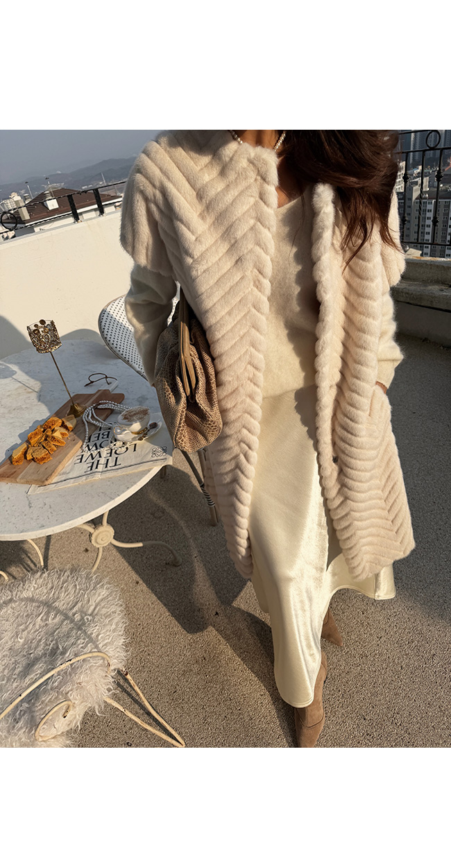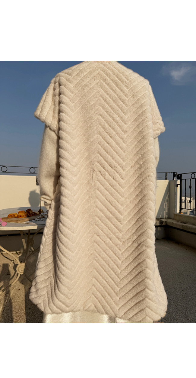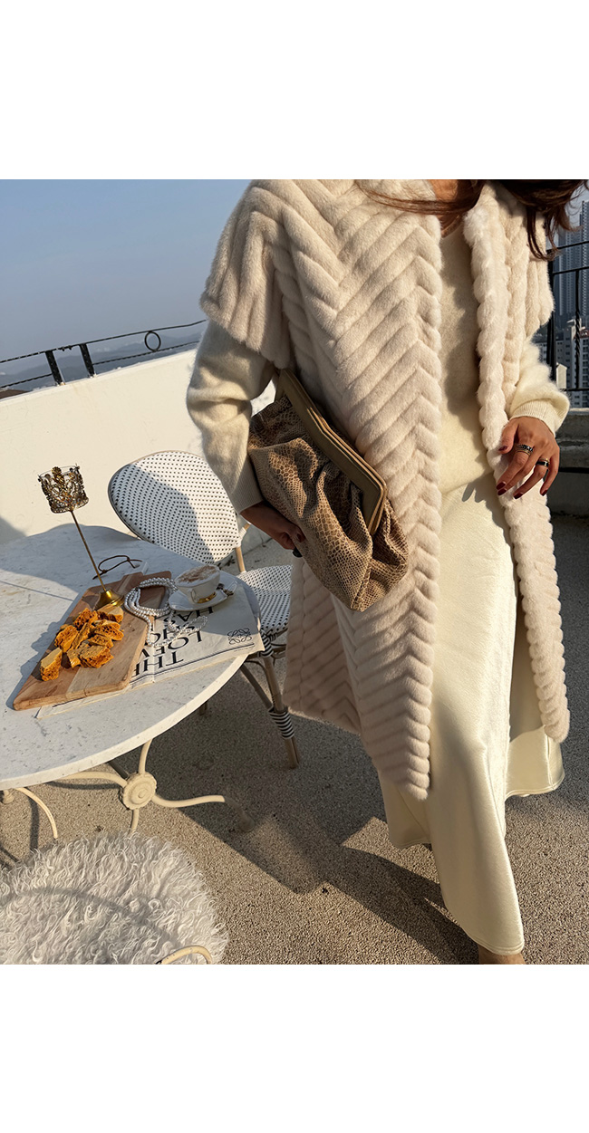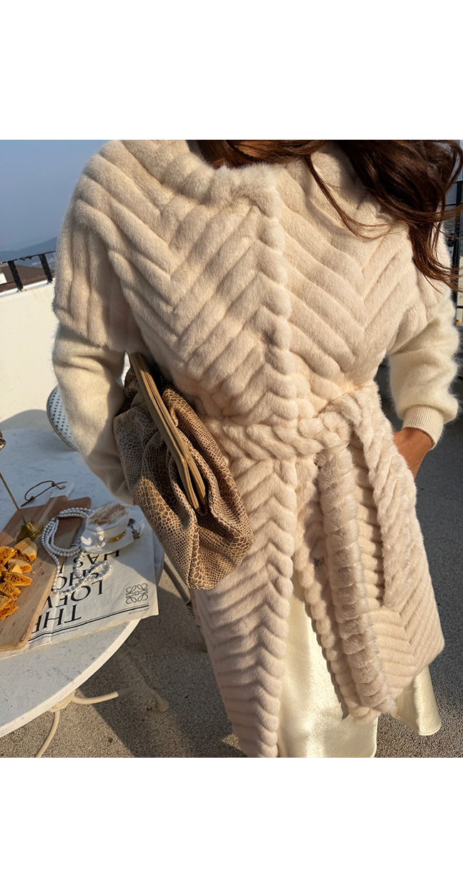 섬세한 헤링본 패턴으로 정돈된 퍼 텍스처가