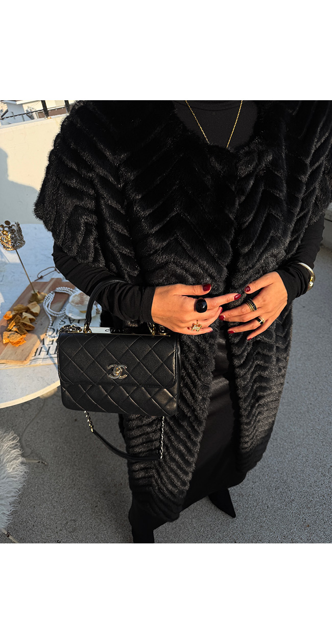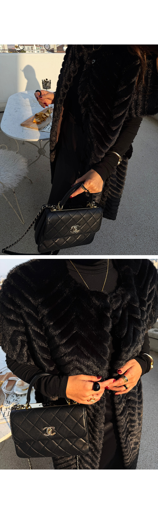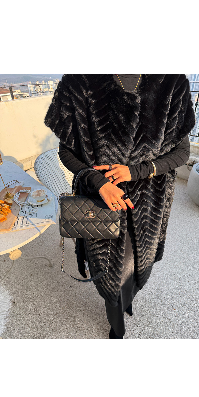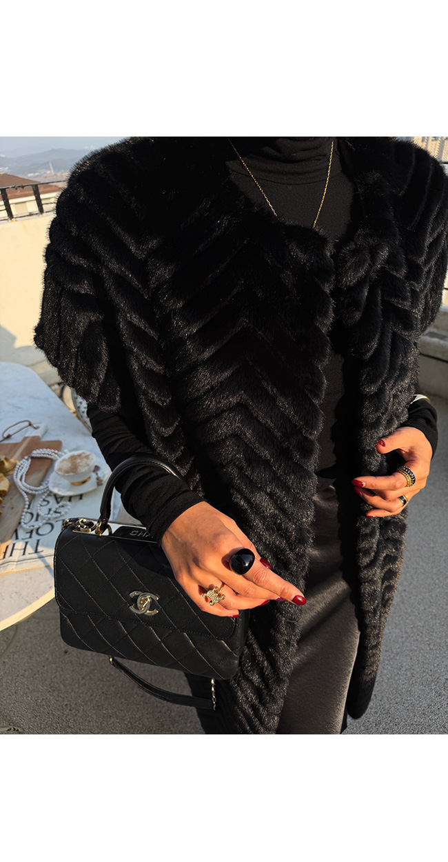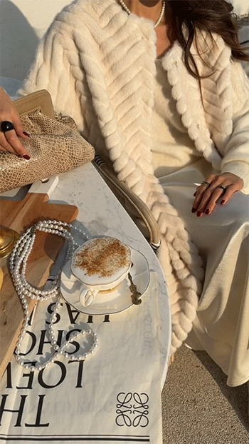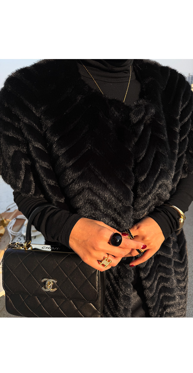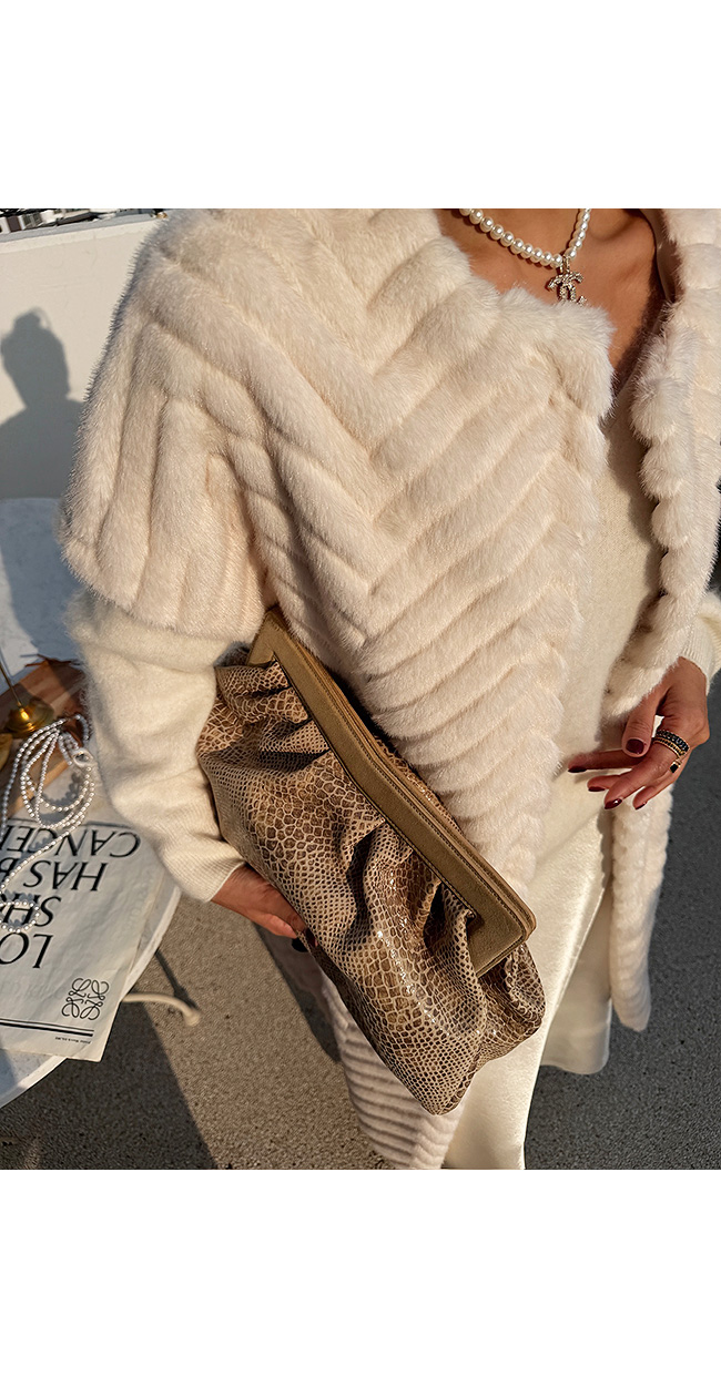 섬세한 헤링본 패턴으로 정돈된 퍼 텍스처가