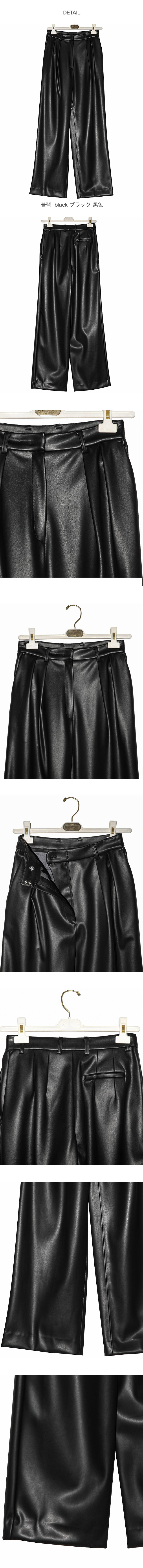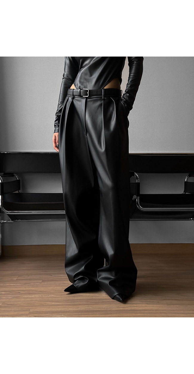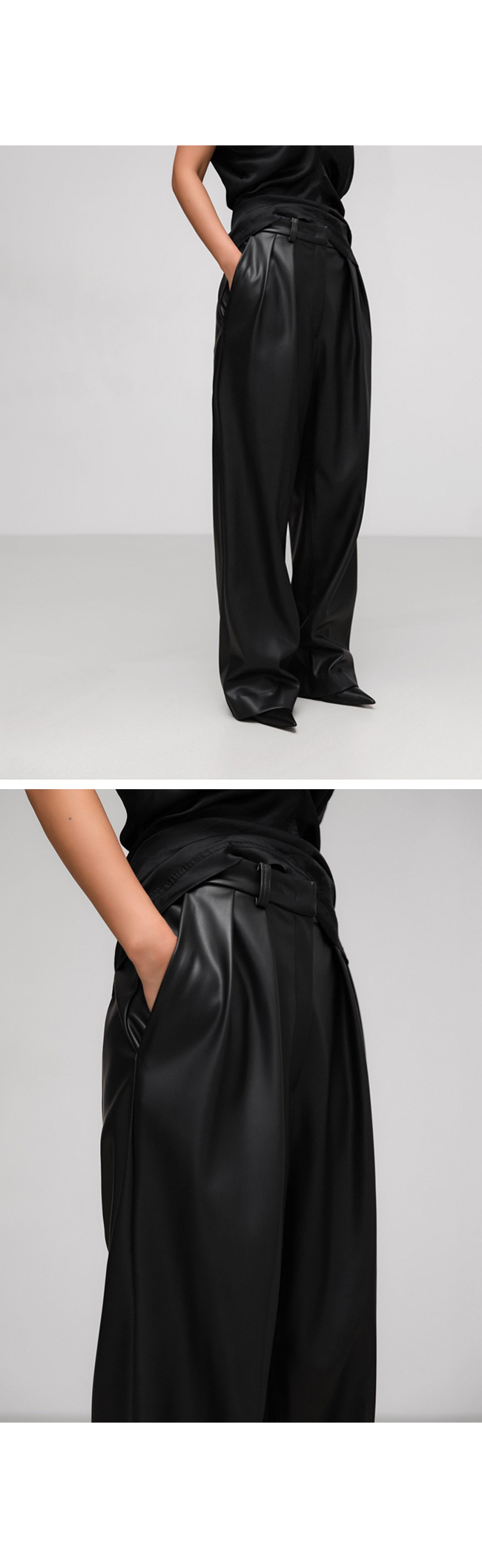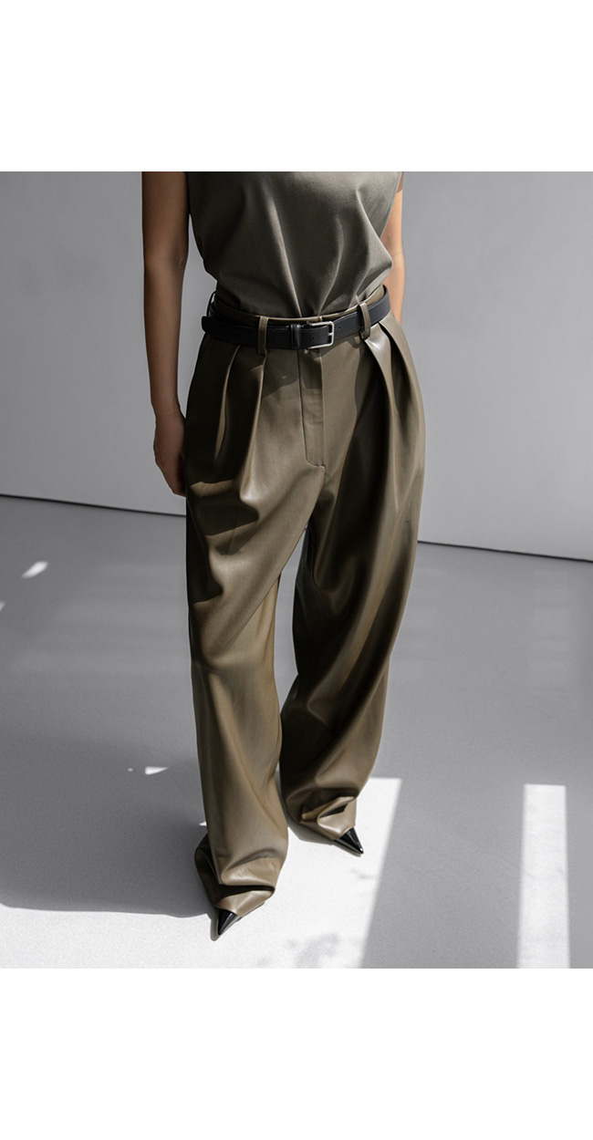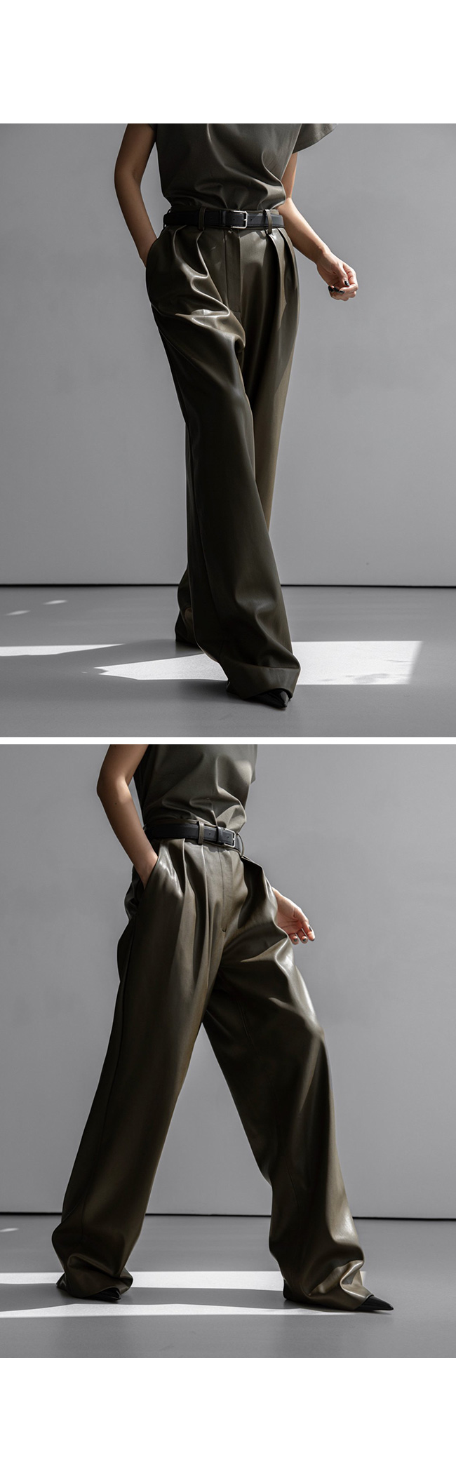 레더 로우 웨이스트 더블 플리츠 와이드 트라우져 입니다.