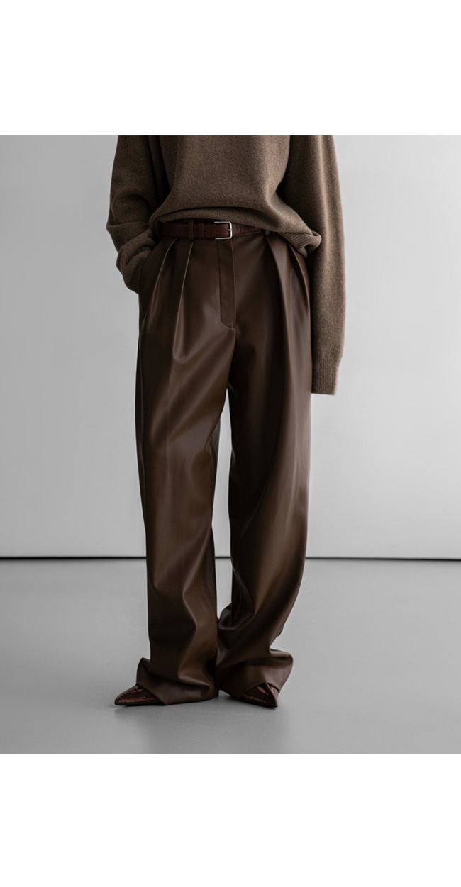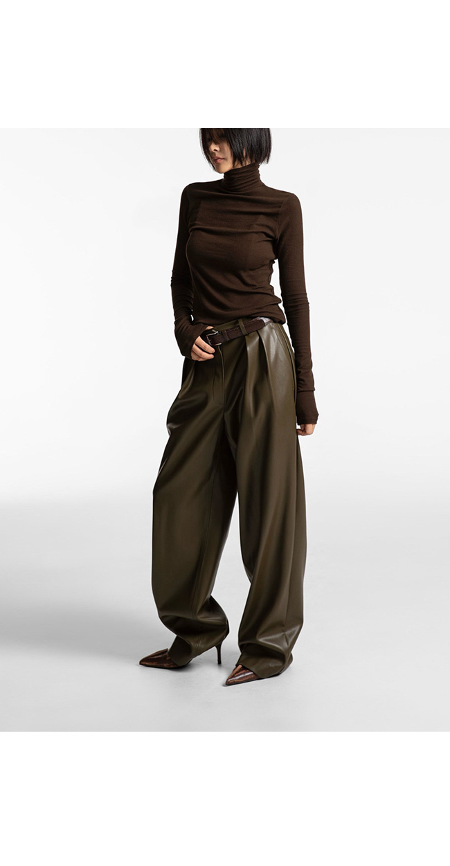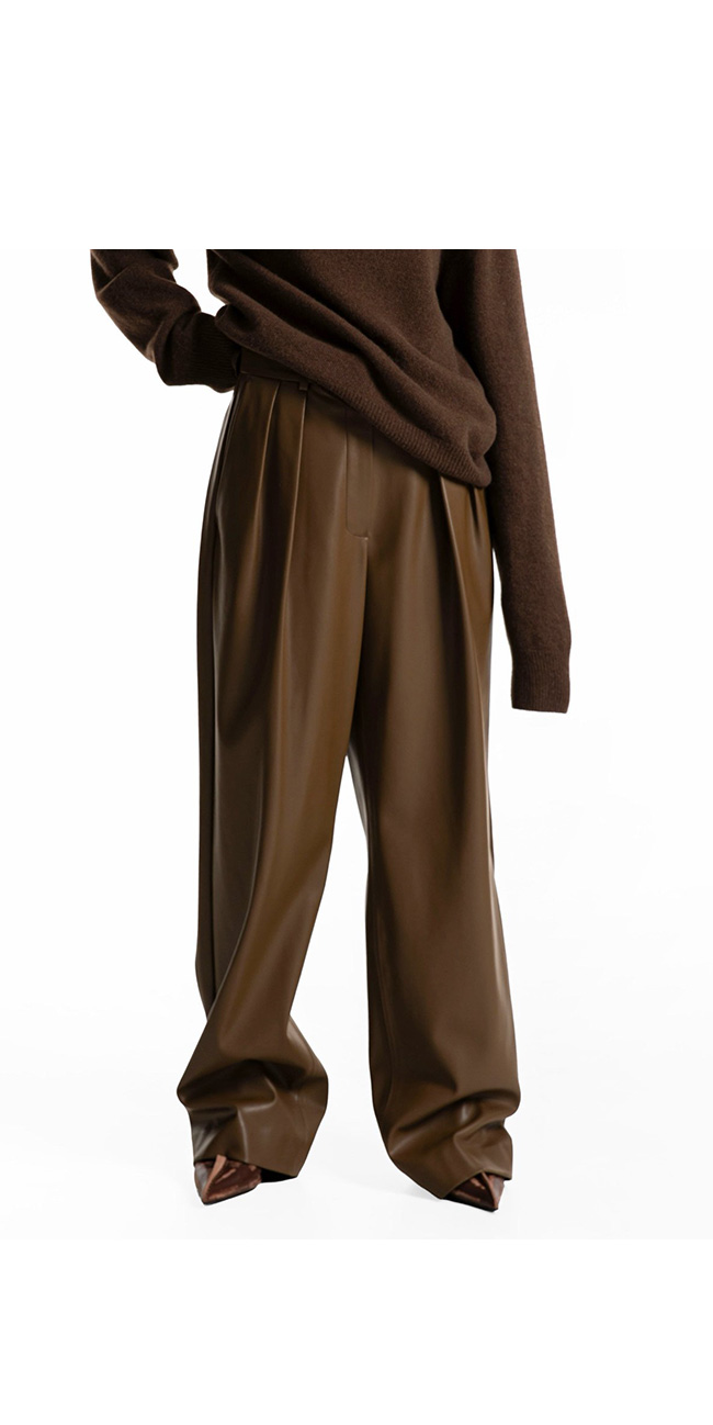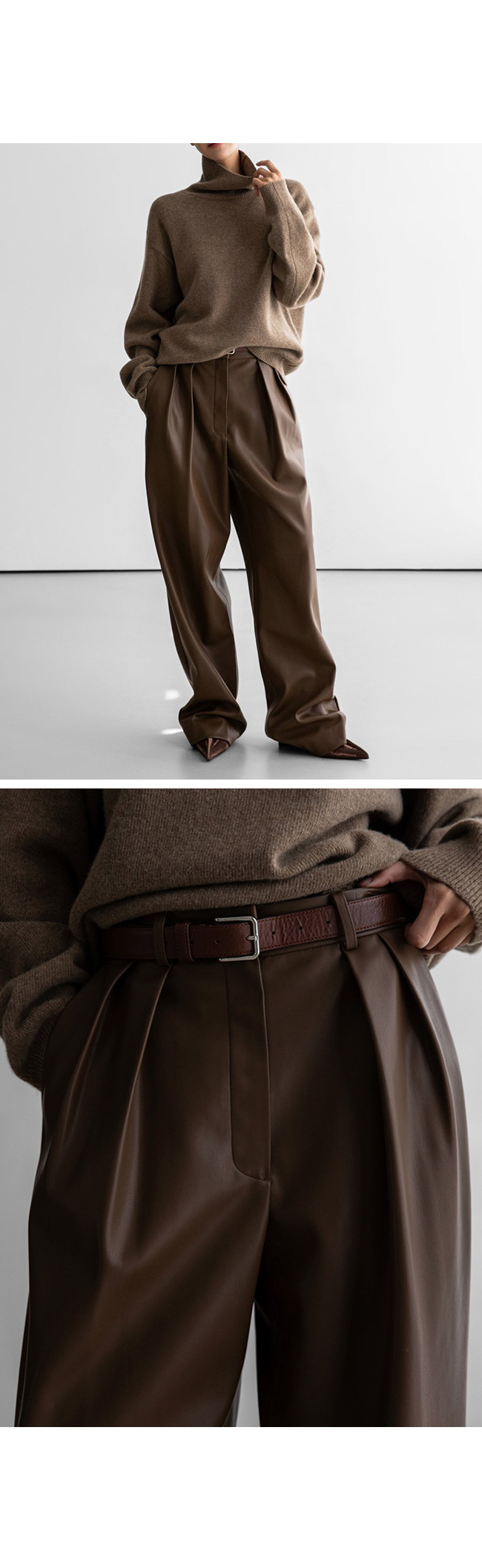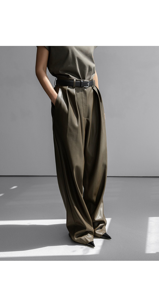 레더 로우 웨이스트 더블 플리츠 와이드 트라우져 입니다.