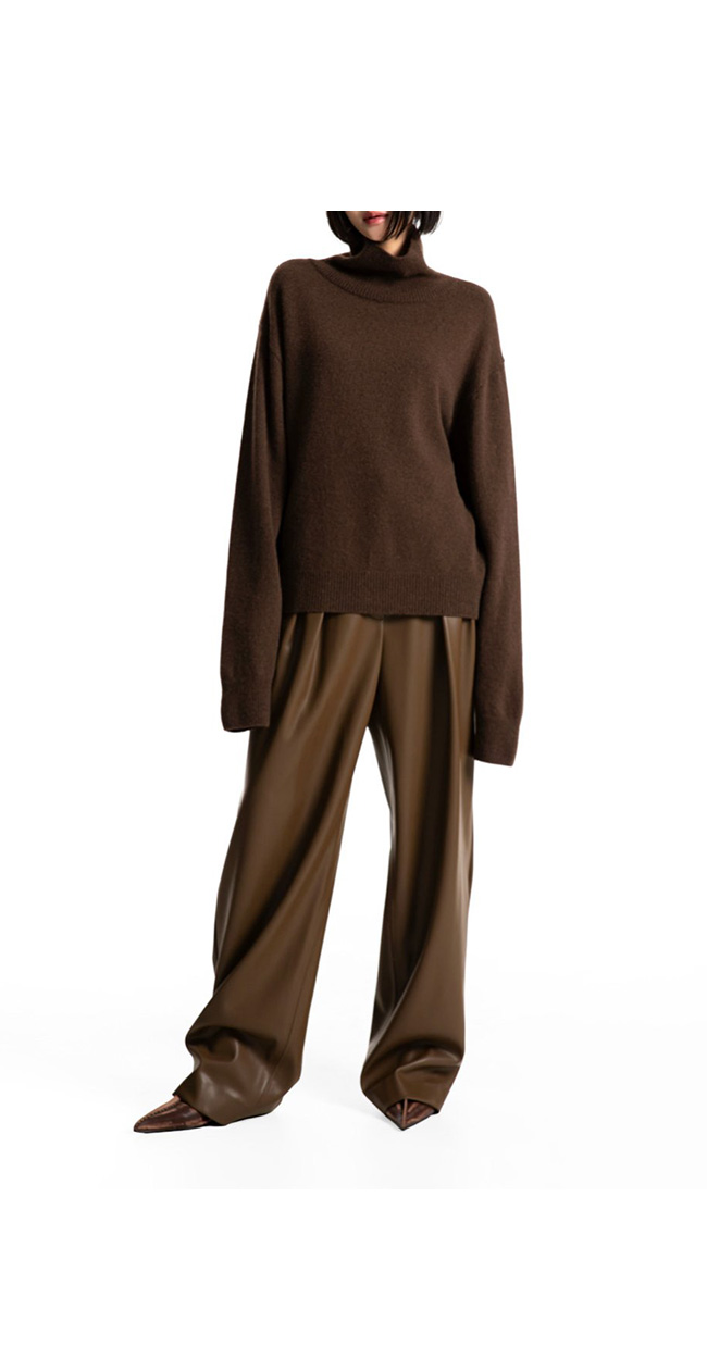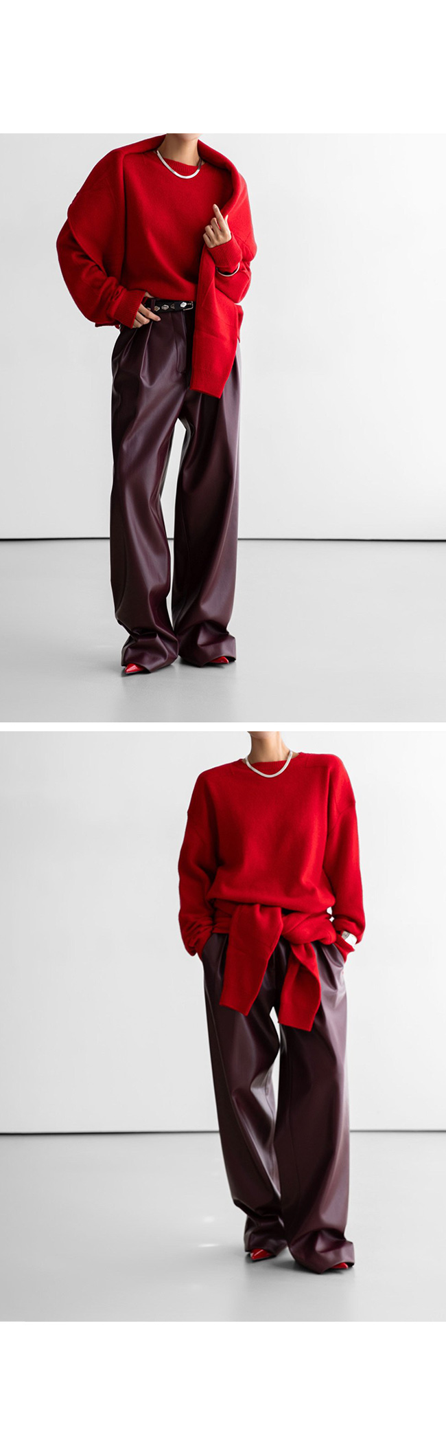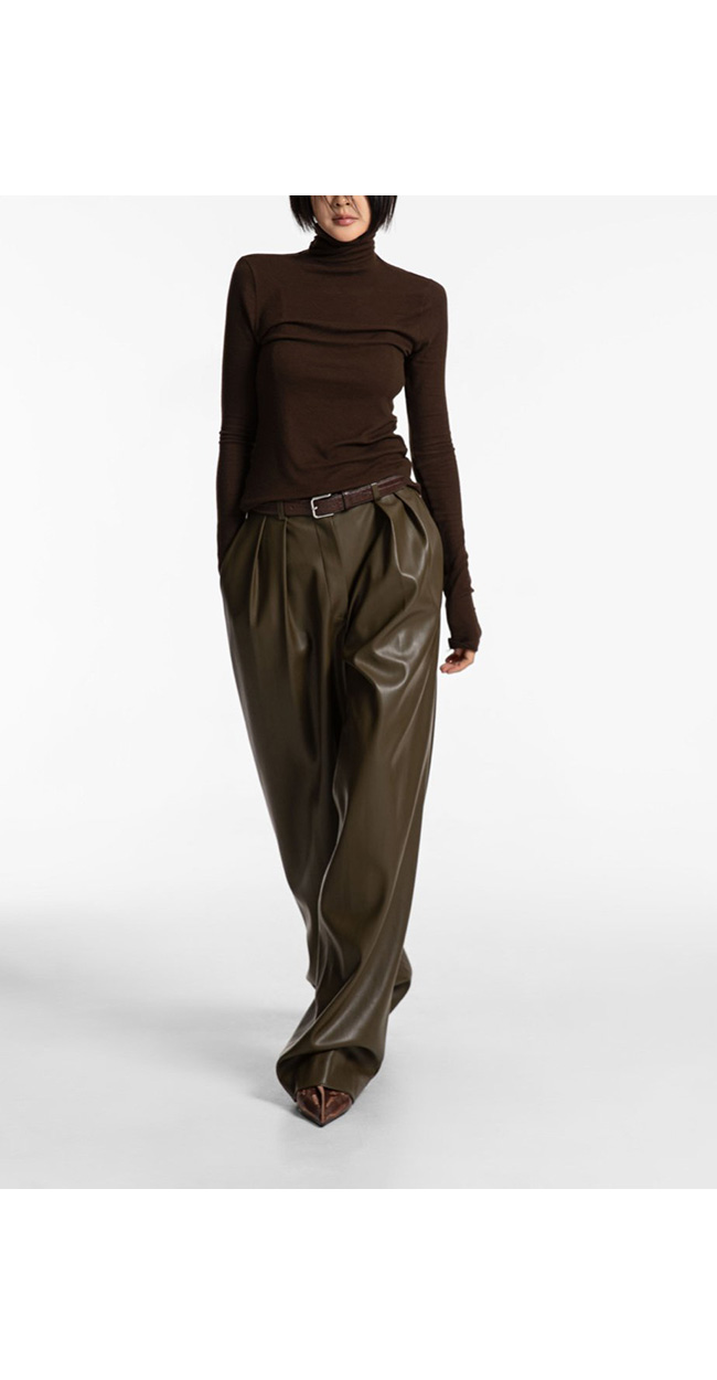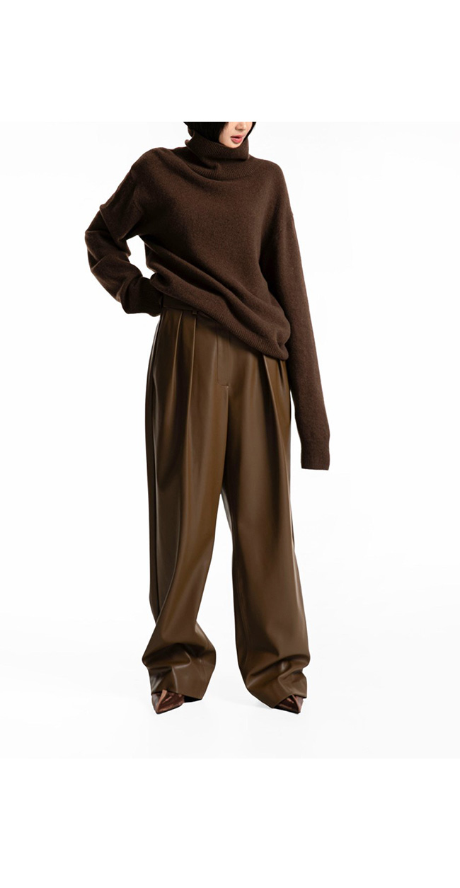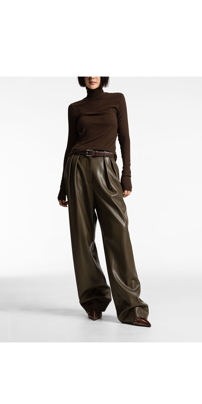 레더 로우 웨이스트 더블 플리츠 와이드 트라우져 입니다.