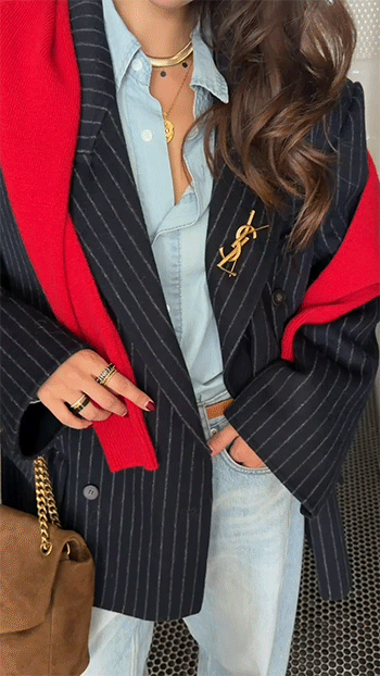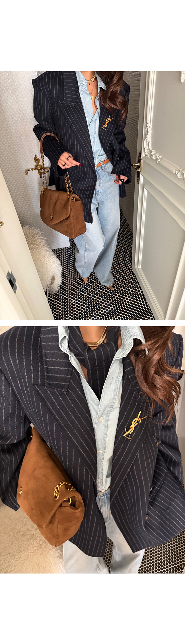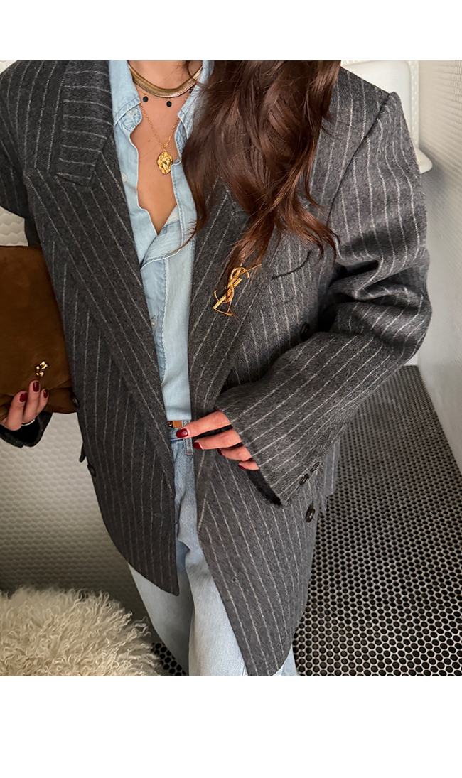 핀스트라이프 더블 자켓을 소개해드릴게요.