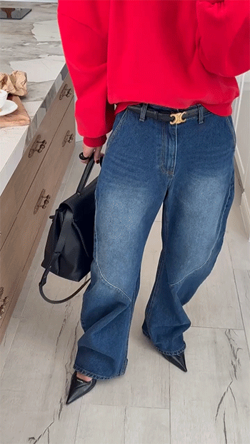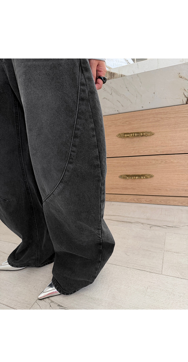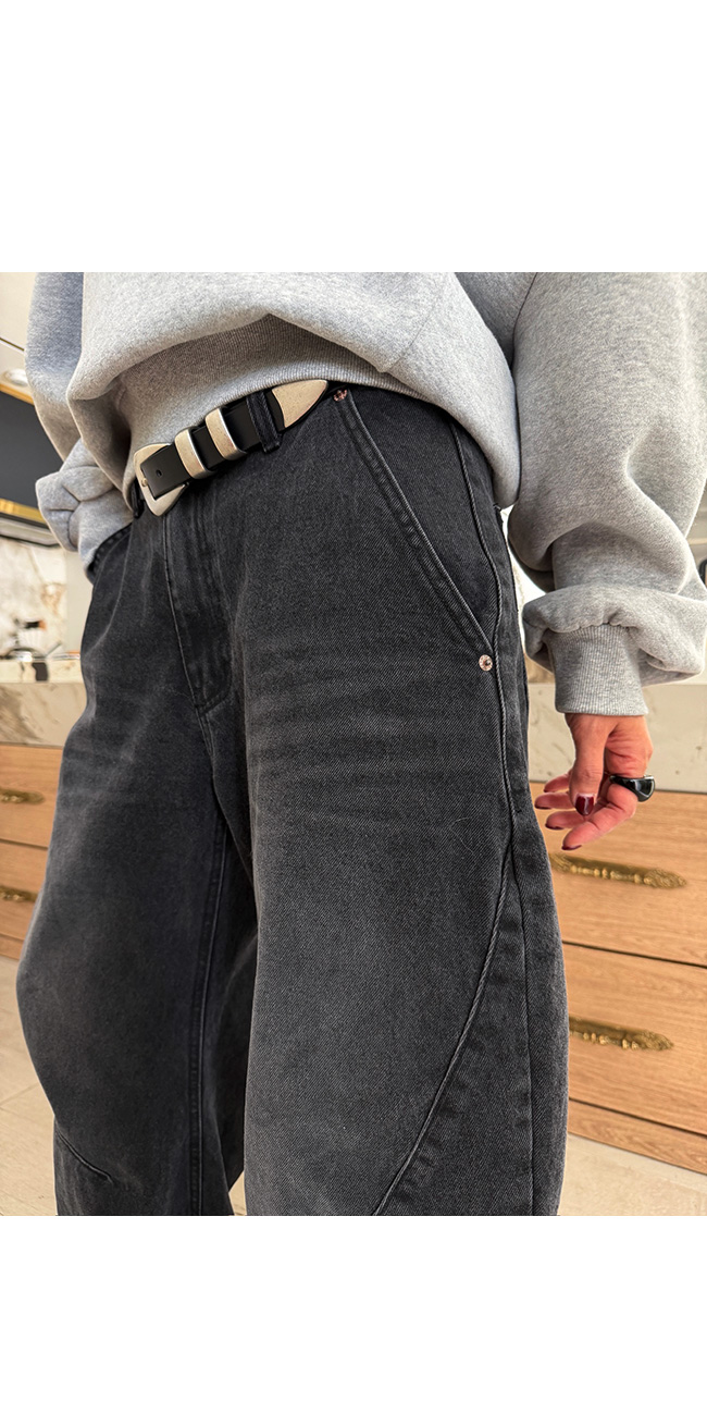 기본 데님 팬츠와는 다른 구조적인 매력이 느껴져요.