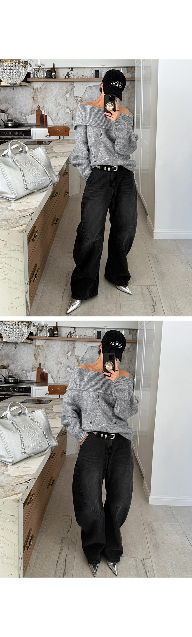 무드를 연출되며, 보트넥처럼 연출할 수도 있어
