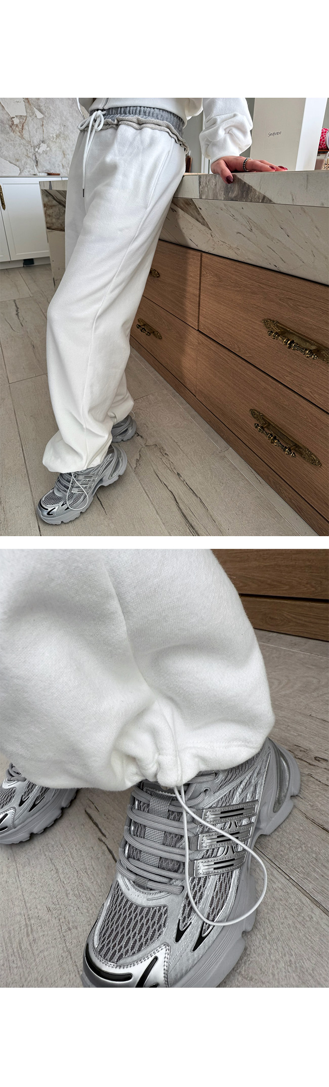 허리라인은 배색 밴딩 디테일로 포인트를 주어