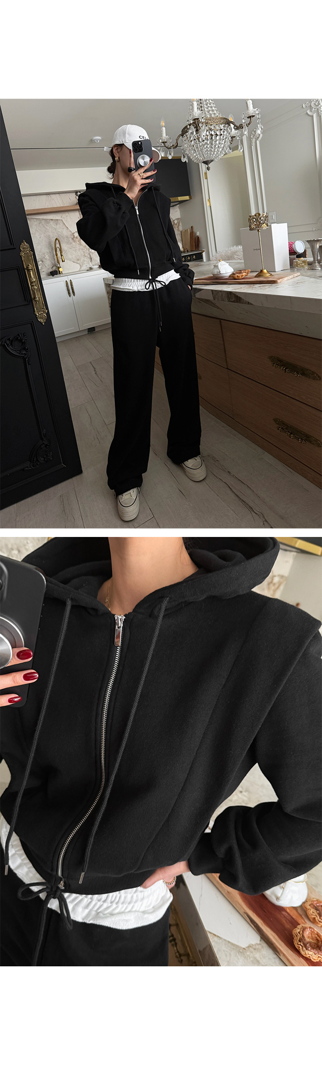 - 안쪽면이 쮸리나 기모가 가공이된 소재감들은 가공 과정에 의해 약간의 먼지가 발생할 수 있으니, 세탁후 입어주세요.