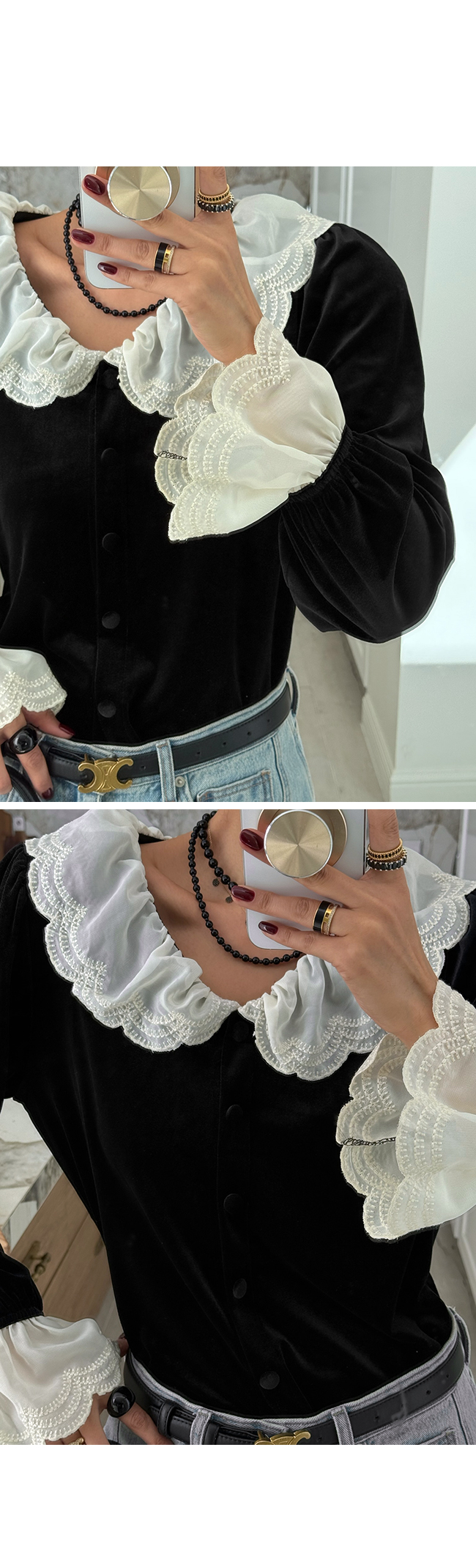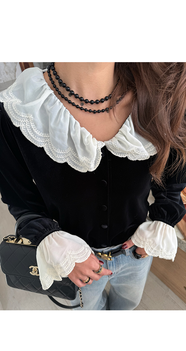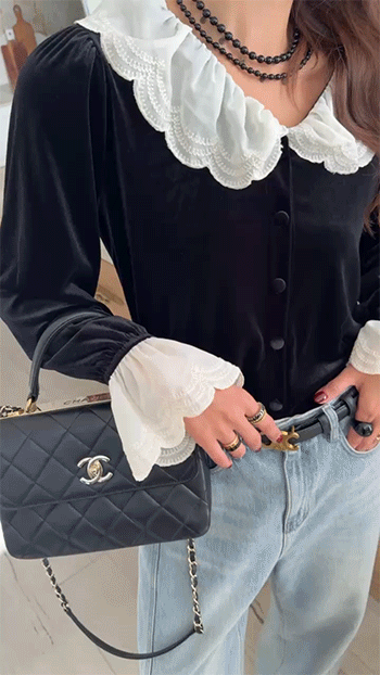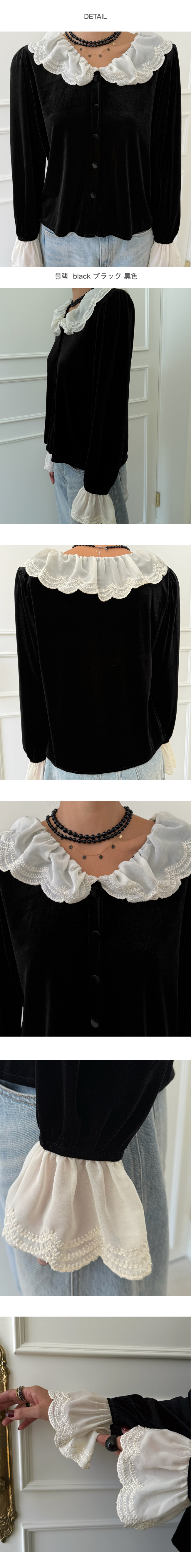 소장 가치 높은 벨벳 프릴 블라우스입니다.