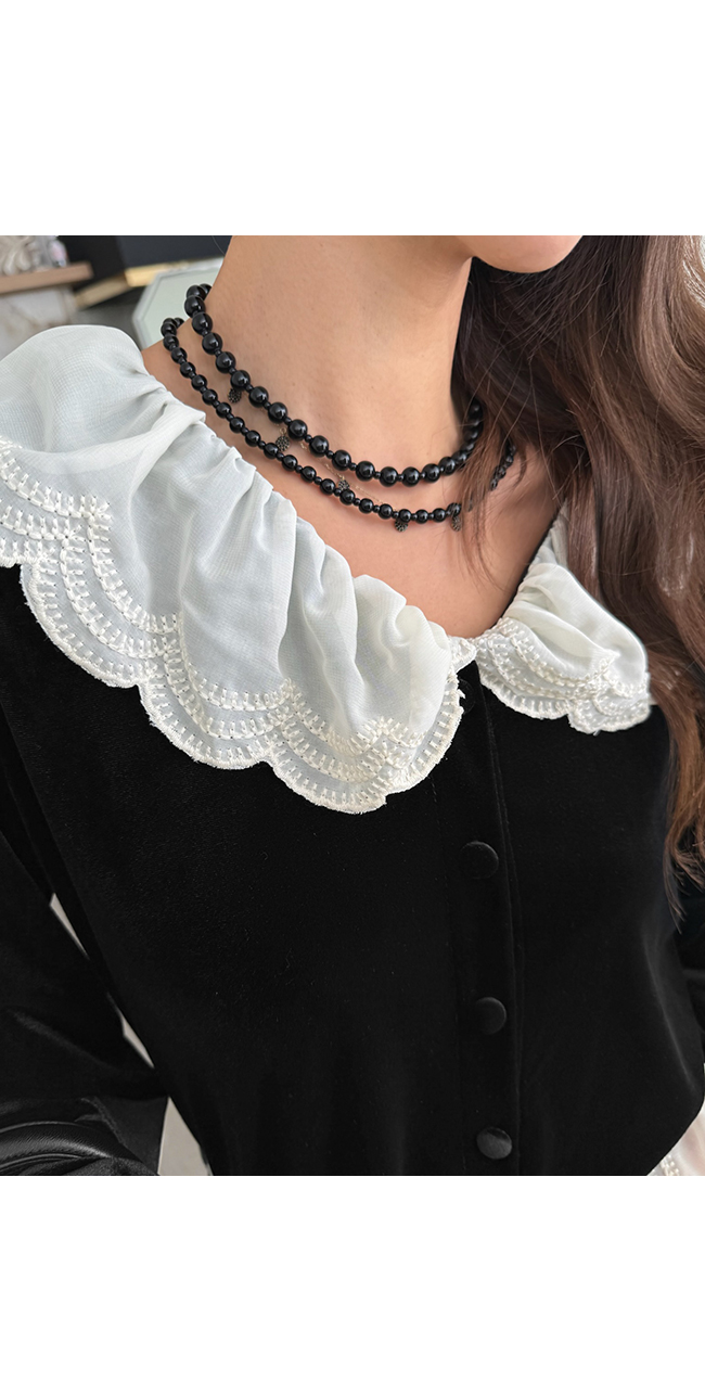 잔잔한 자수결이 더해진 프릴은 입체적인 볼륨감을 주어