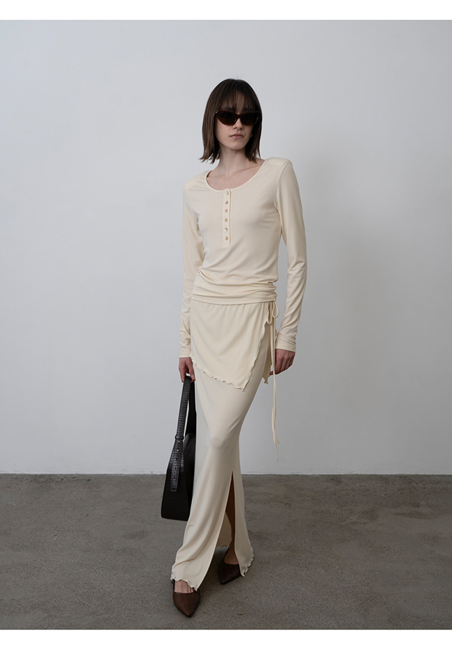 르아 더블 밴딩 롱 스커트