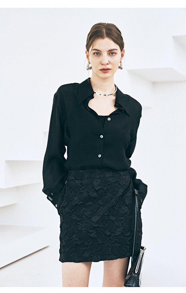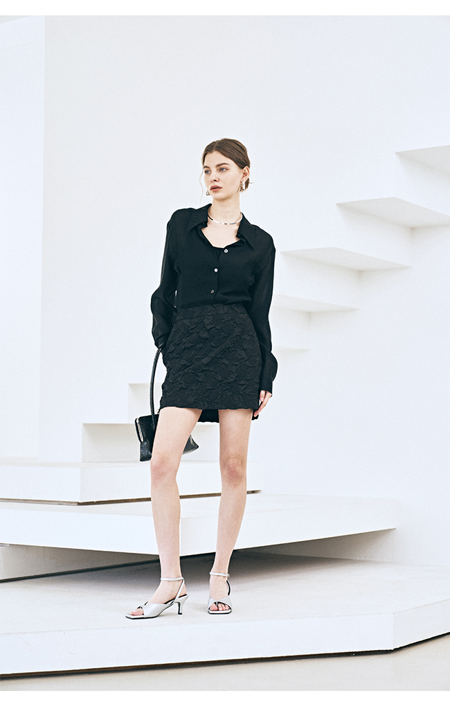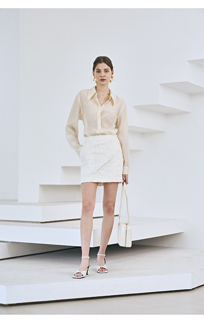 - 적당한 미니 기장의 깔끔하게 떨어지는 실루엣