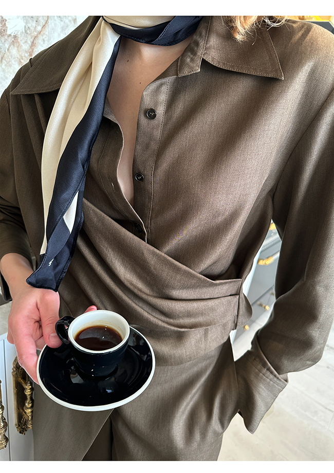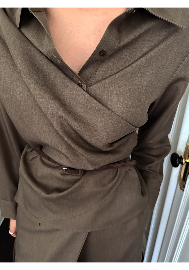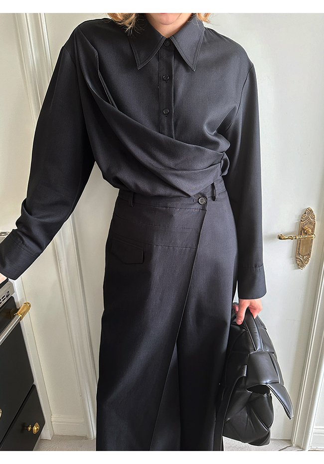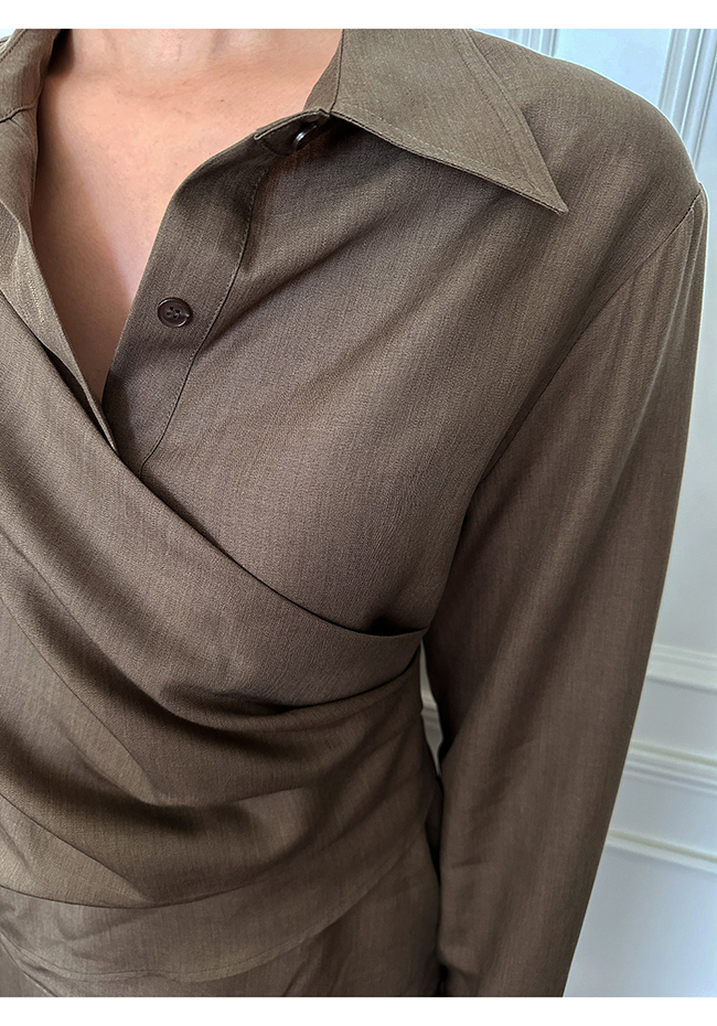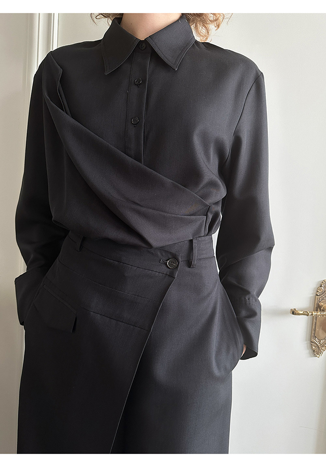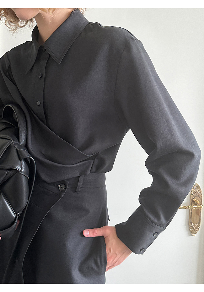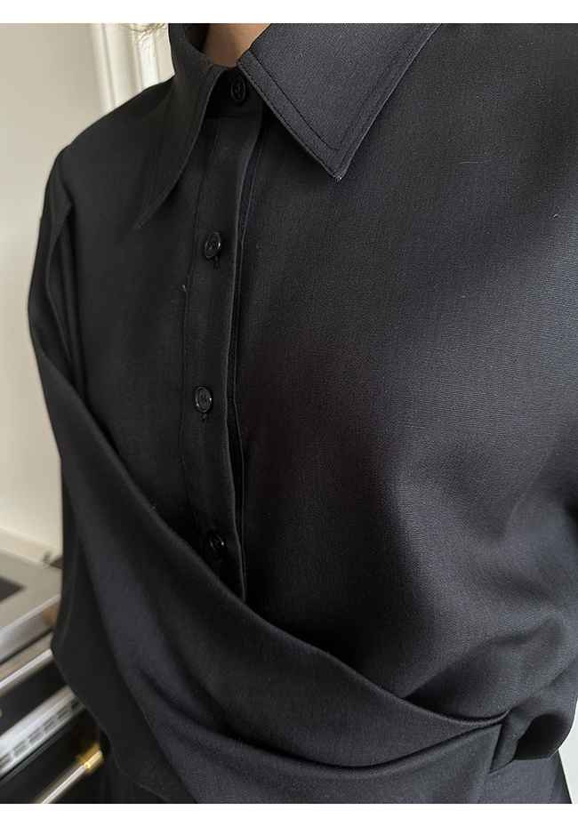 - 실루엣이 돋보이는 랩 형태의 셔츠