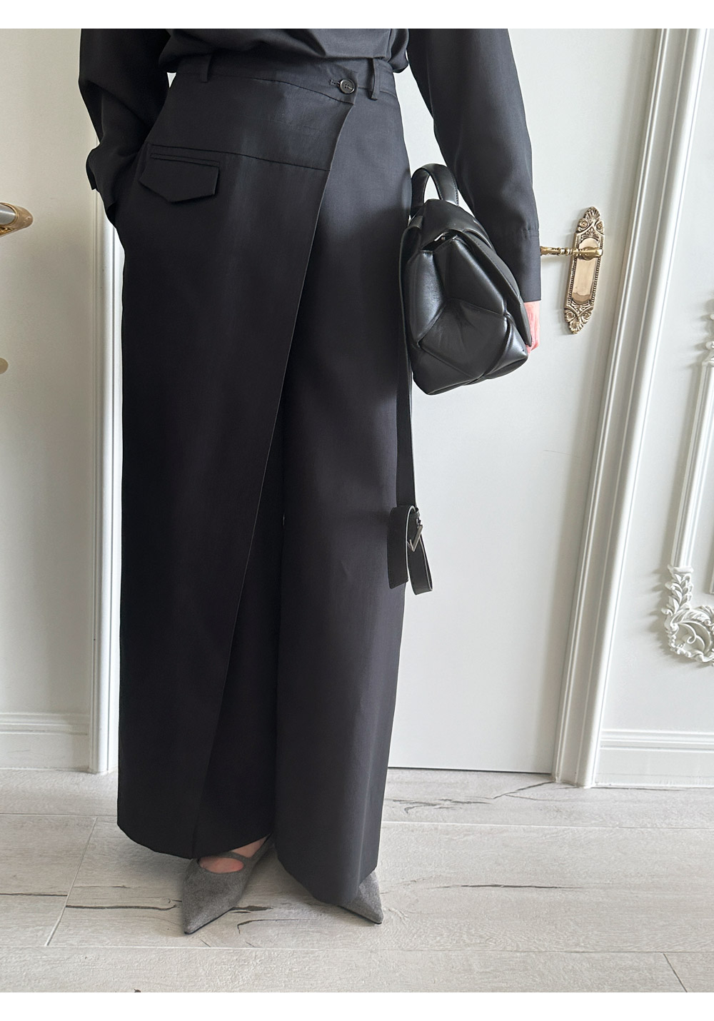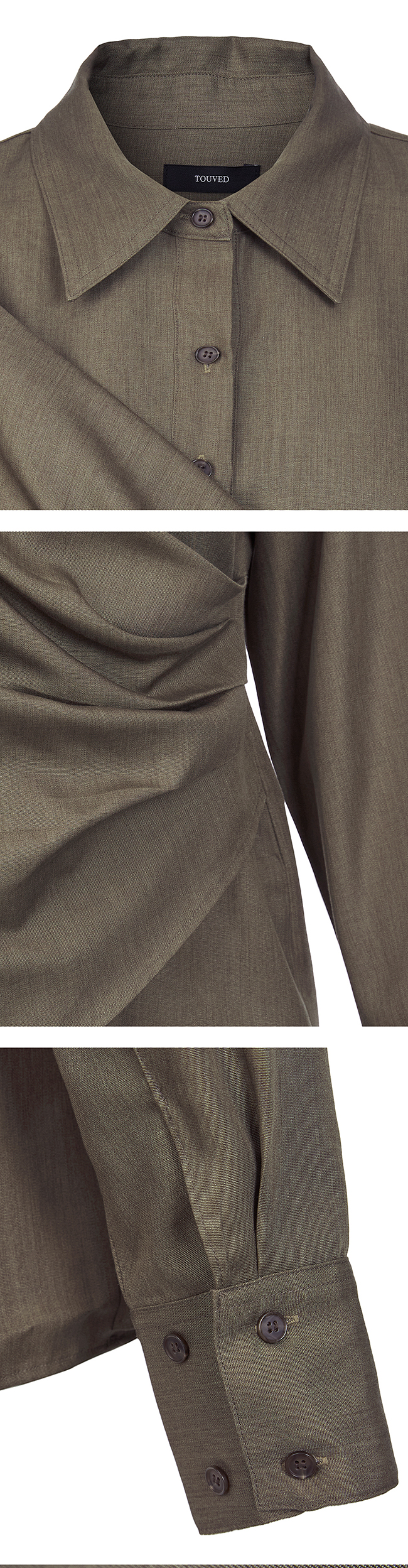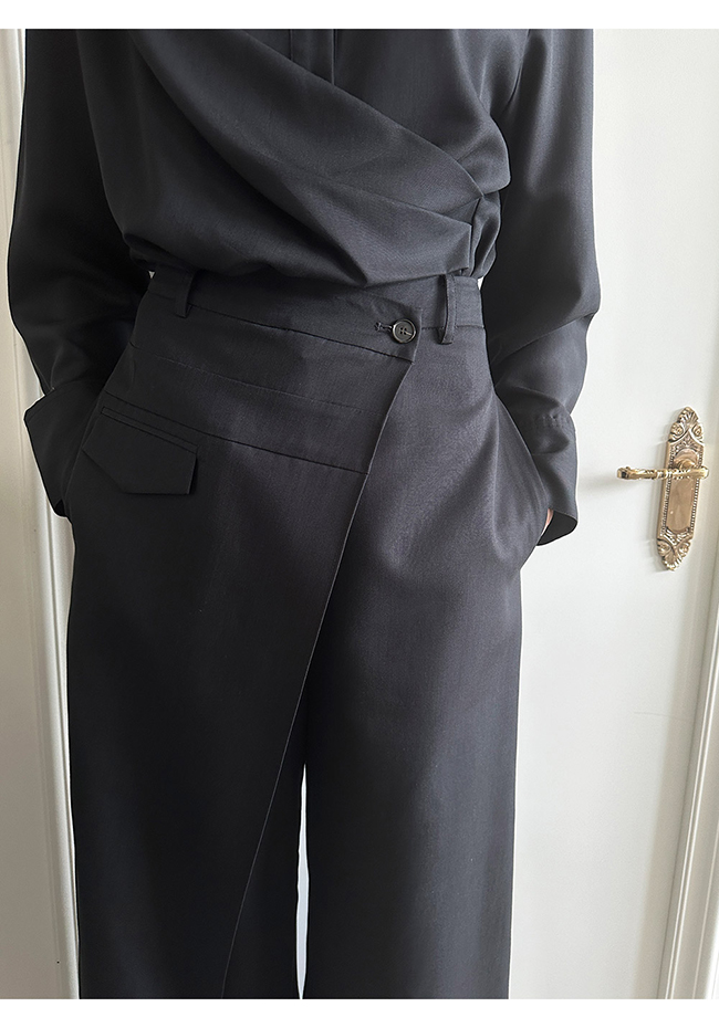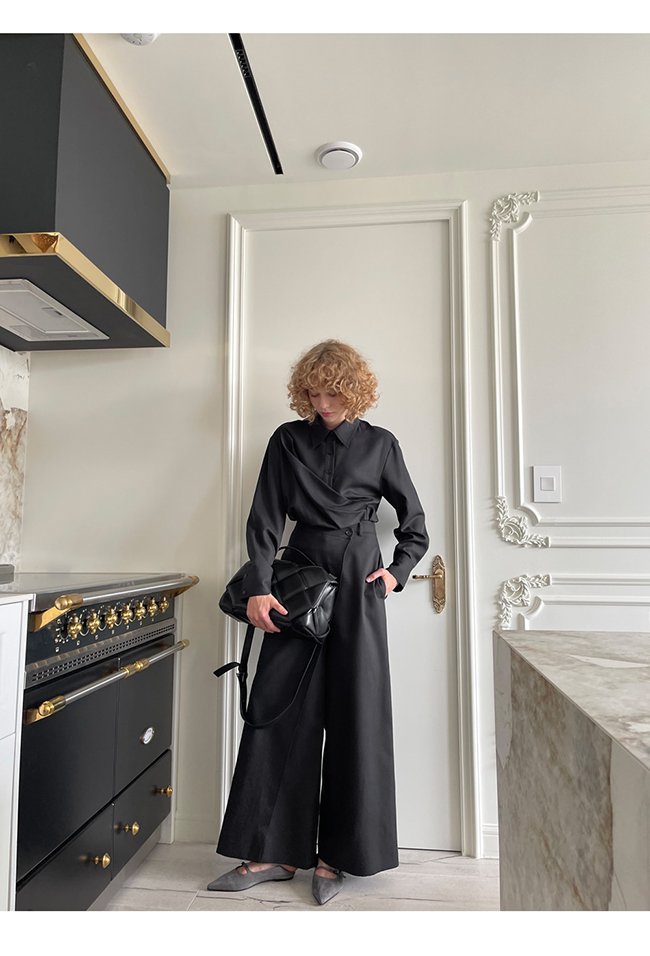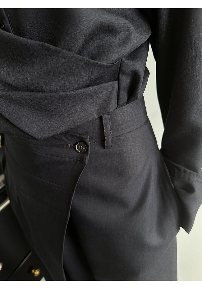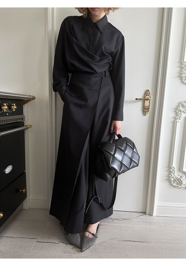 - 실루엣이 돋보이는 랩 형태의 셔츠
