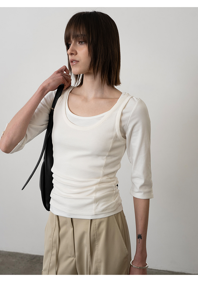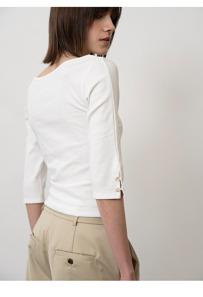 - 슬림한 핏의 7부 소매 티셔츠