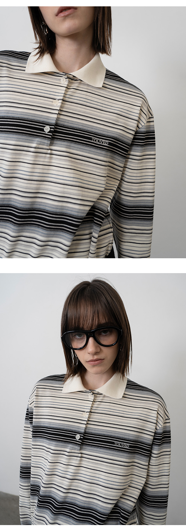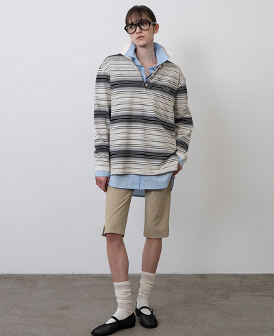 - 레트로 무드의 스트라이프 패턴이 특징인 카라 져지 탑