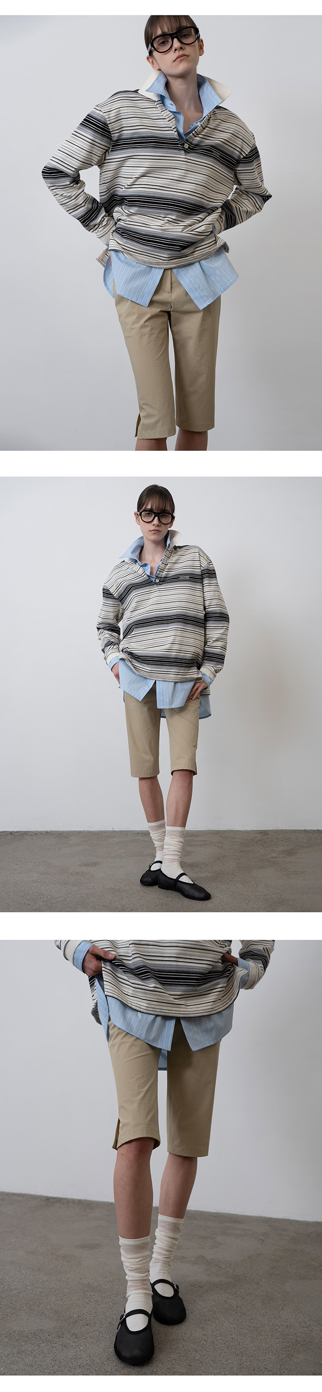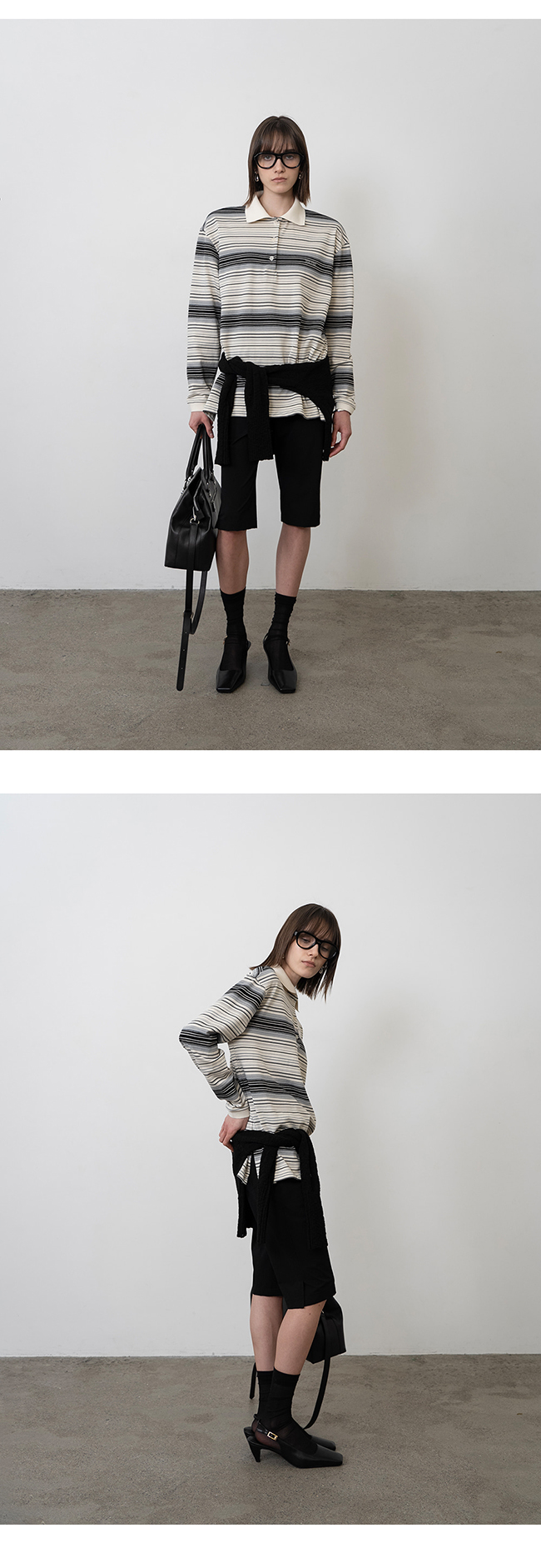 - 블랙/크림 스트라이프 한 컬러