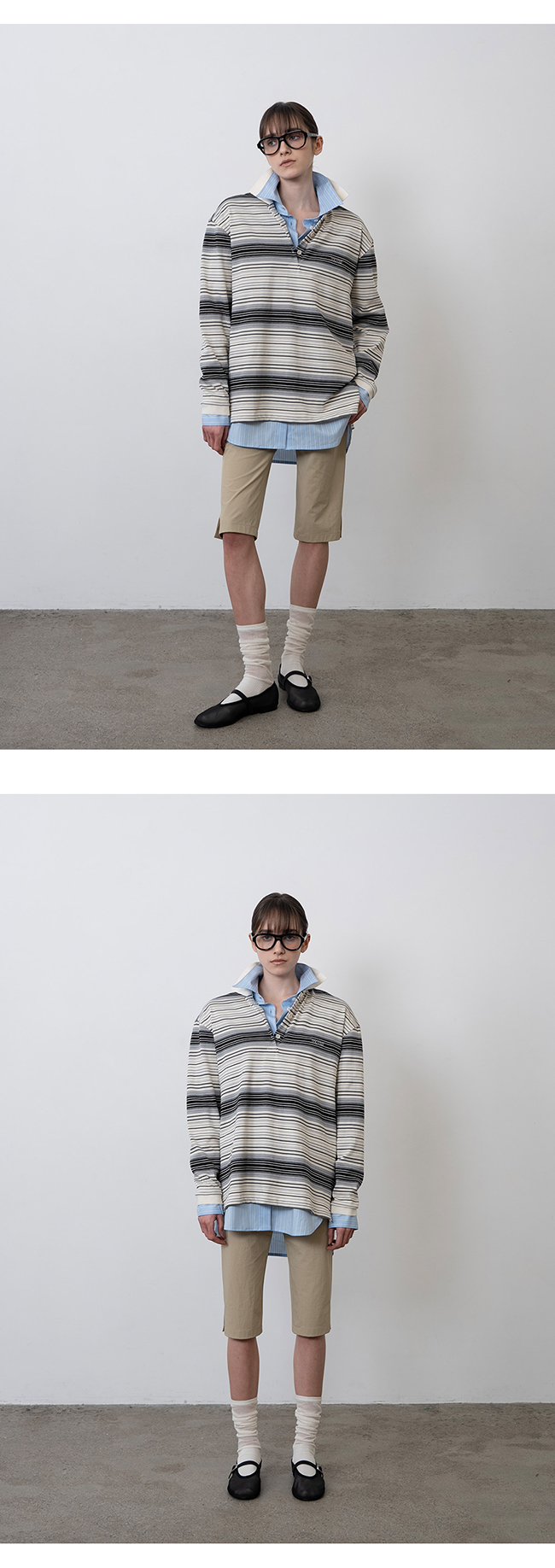 - 드롭 숄더 라인으로 여유로운 세미 오버사이즈 실루엣