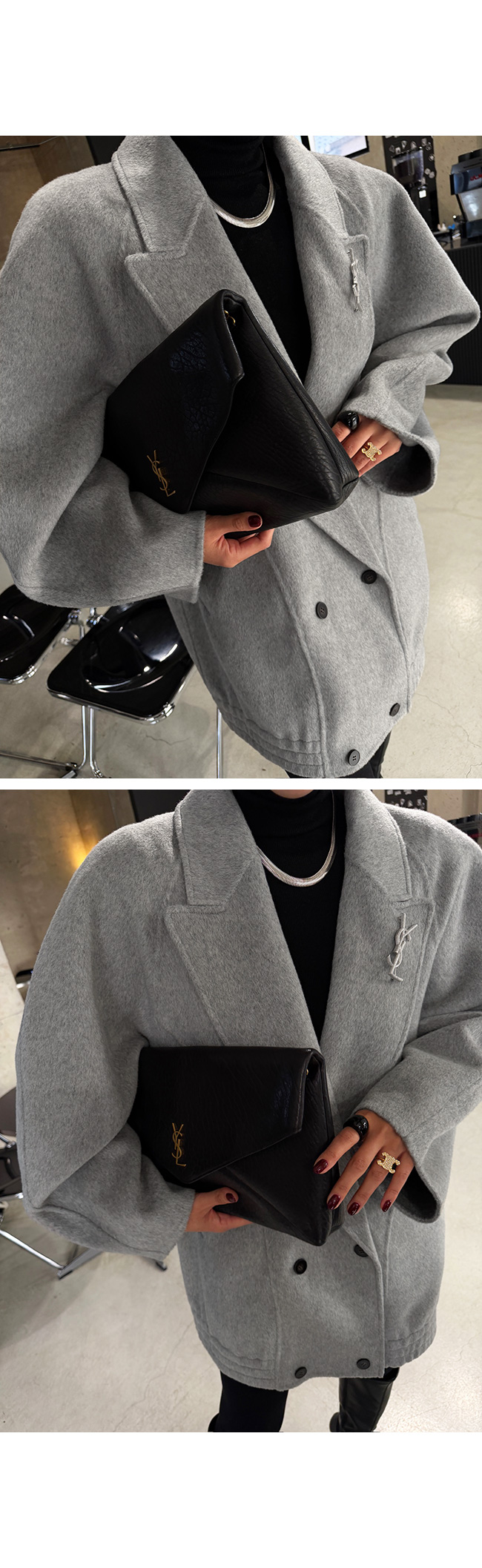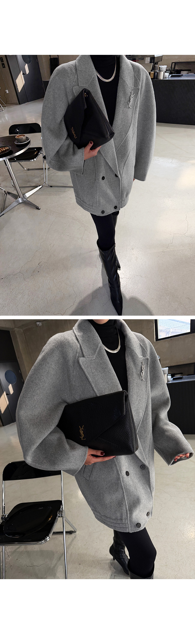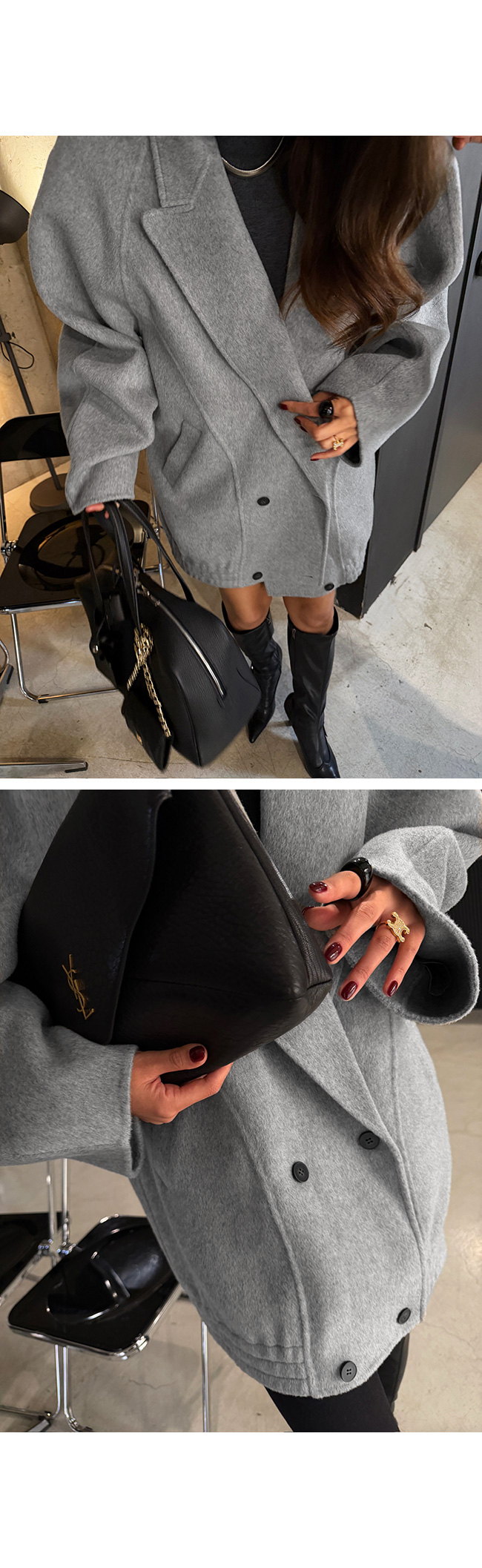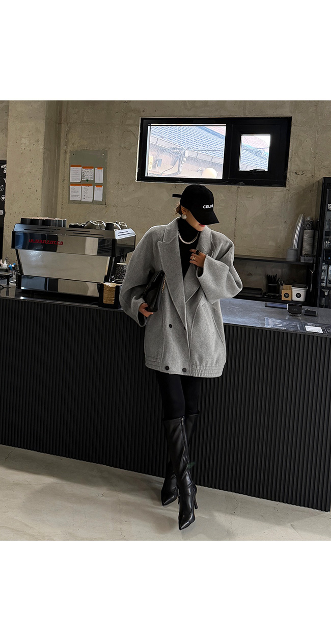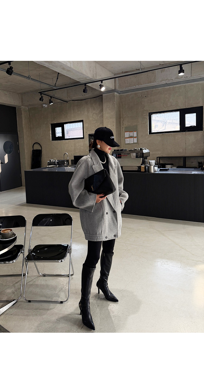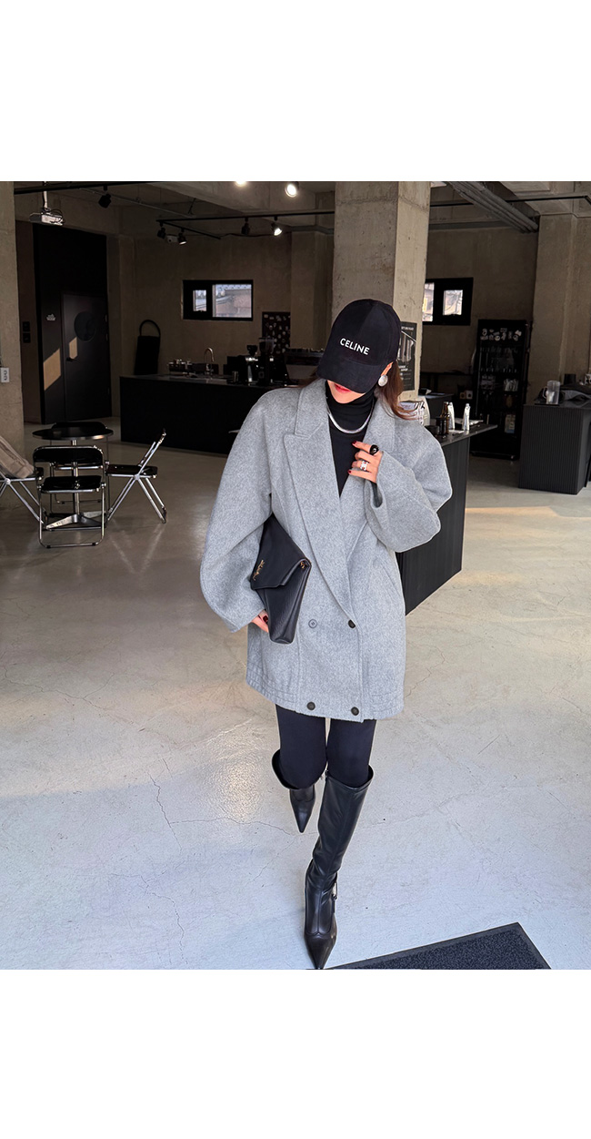 테일러드 카라와 더블 버튼 디자인이 더해져