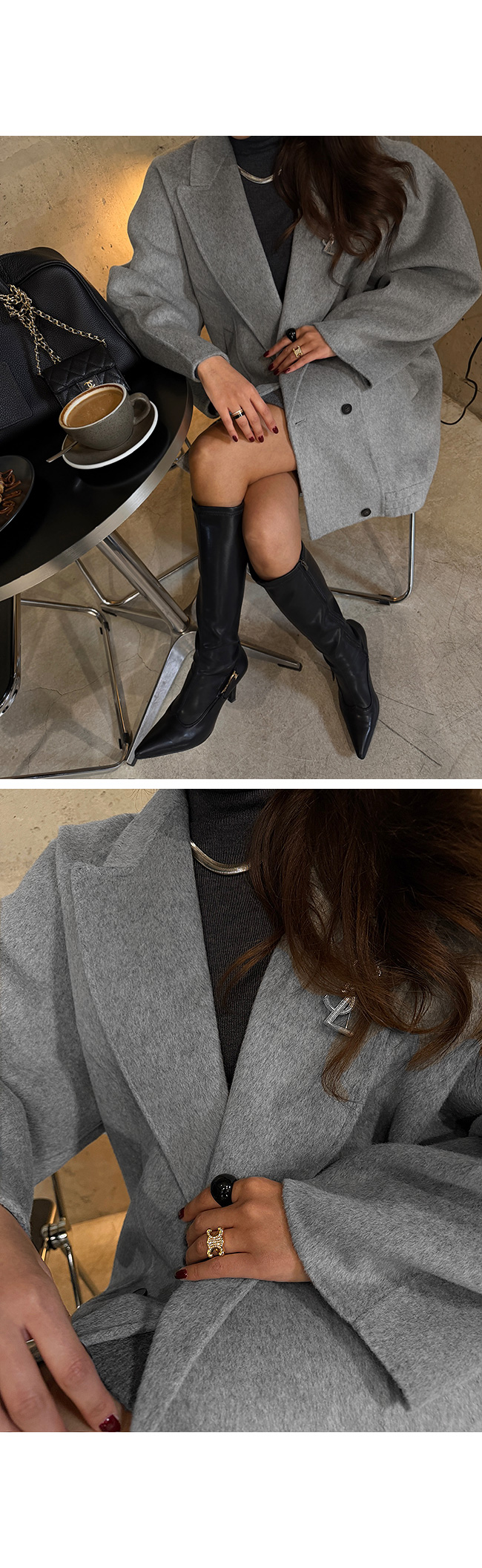 힙을 충분히 덮는 안정적인 반코트 기장은