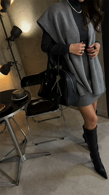 소매와 바디 전체가 잔잔한 세로 골지로 구성되어