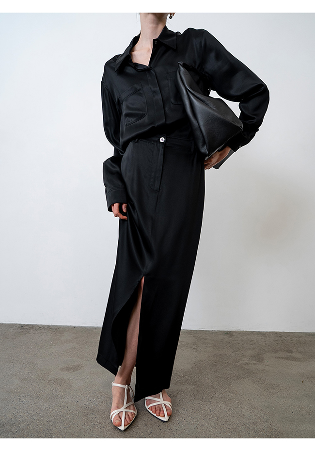 -유연하지만 중량감 있는 소재로 멋스럽게 떨어지는 실루엣
