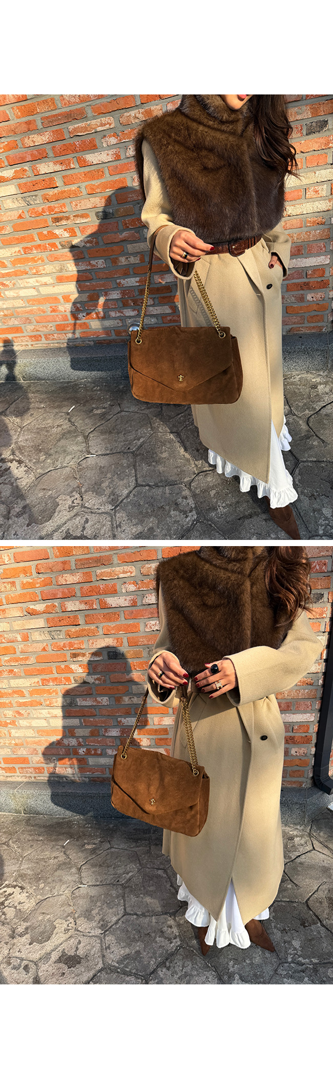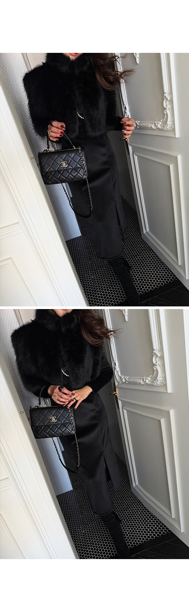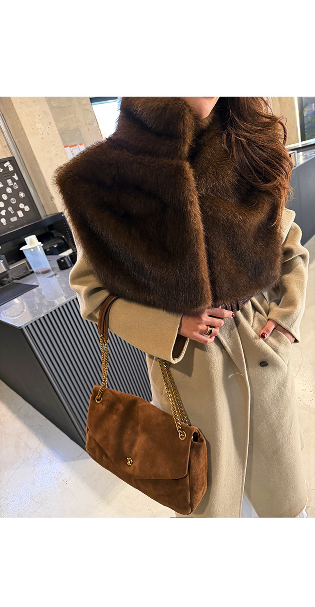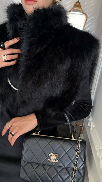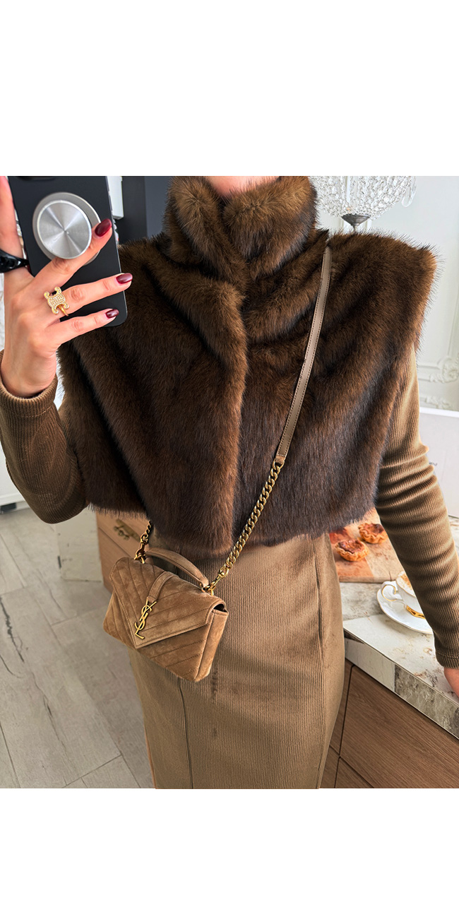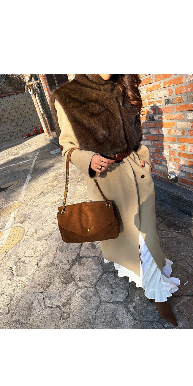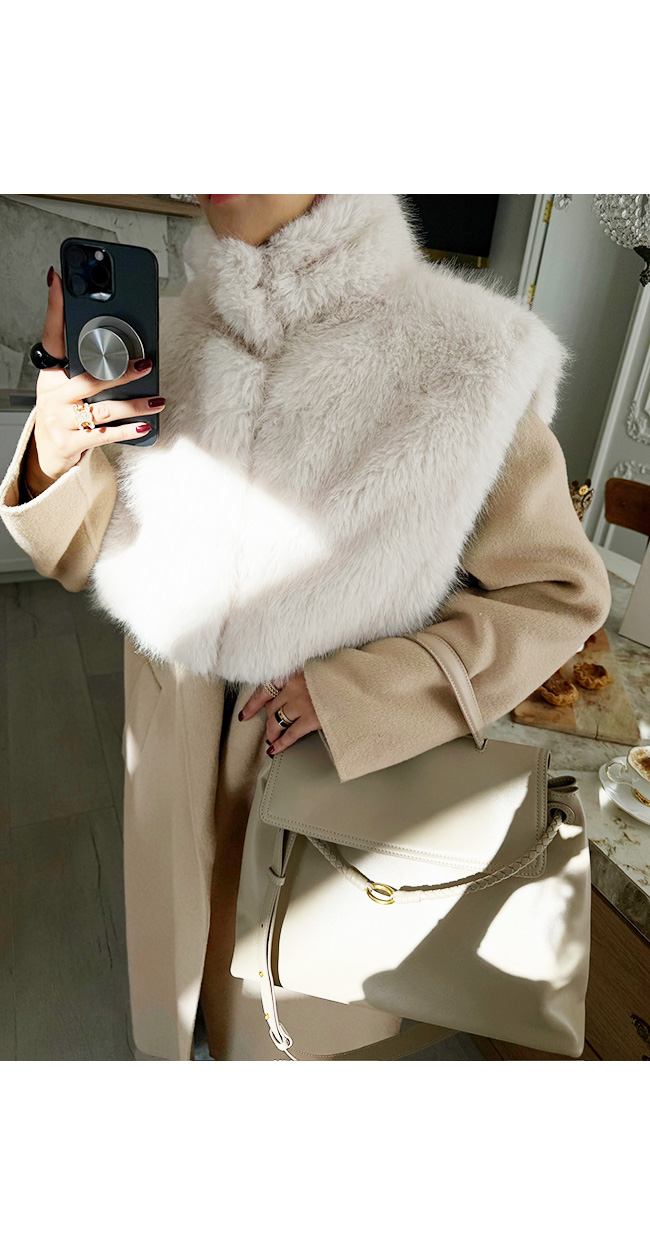 룩에 깊이감을 더해주는 자체제작 퍼 베스트,