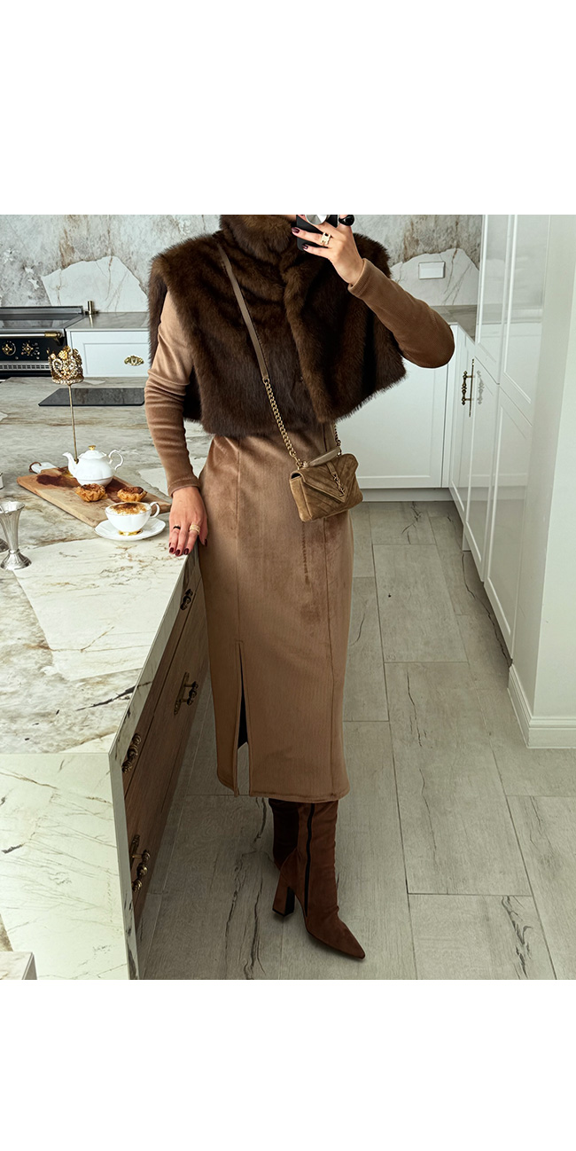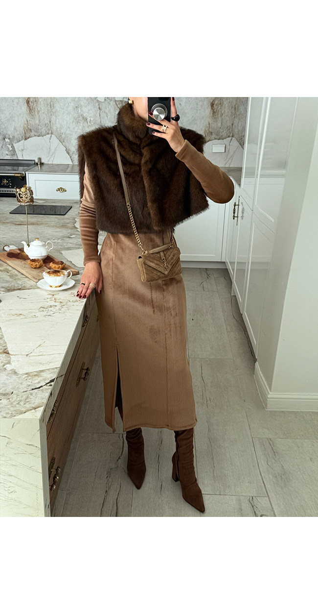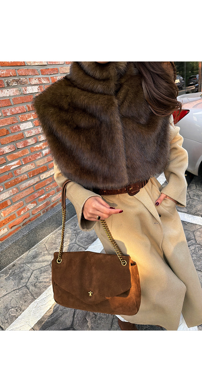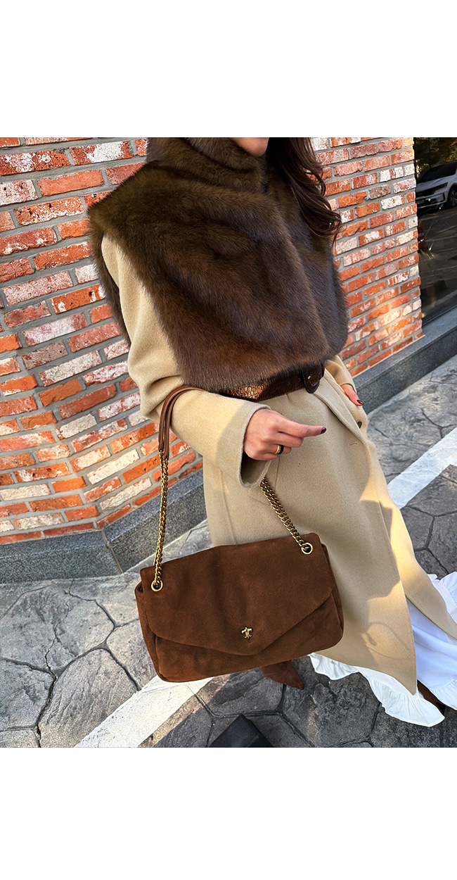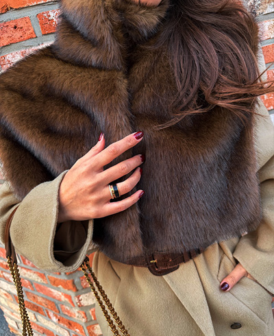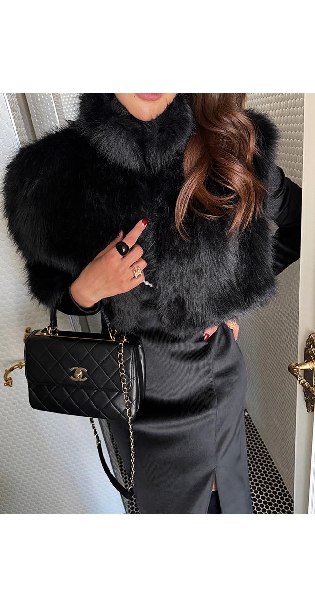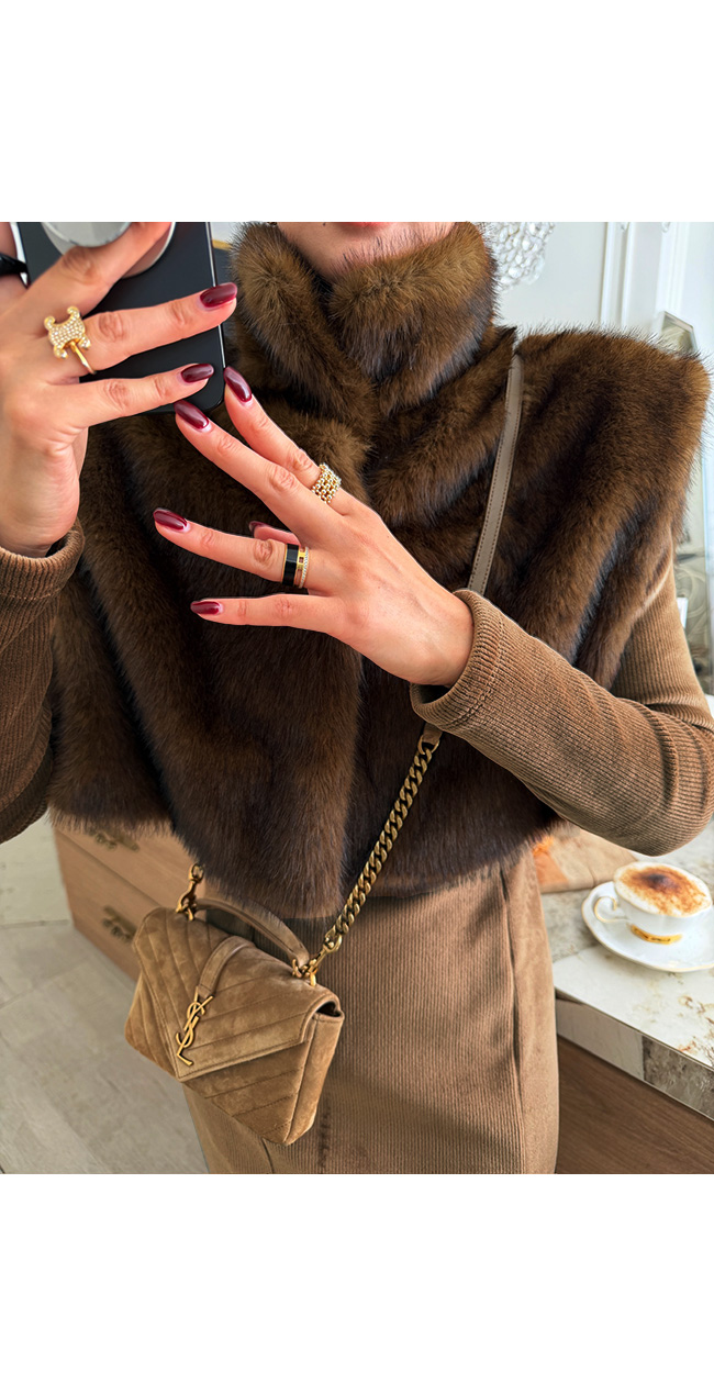 룩에 깊이감을 더해주는 자체제작 퍼 베스트,