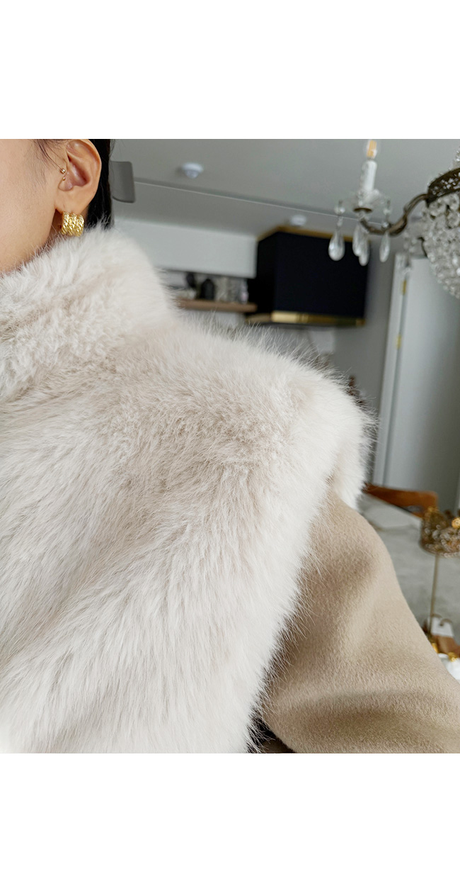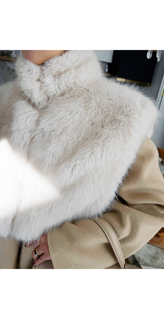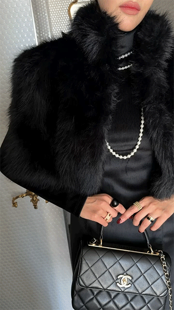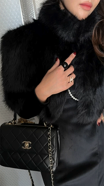 뒤쪽으로 떨어지는 퍼의 풍성한 볼륨이